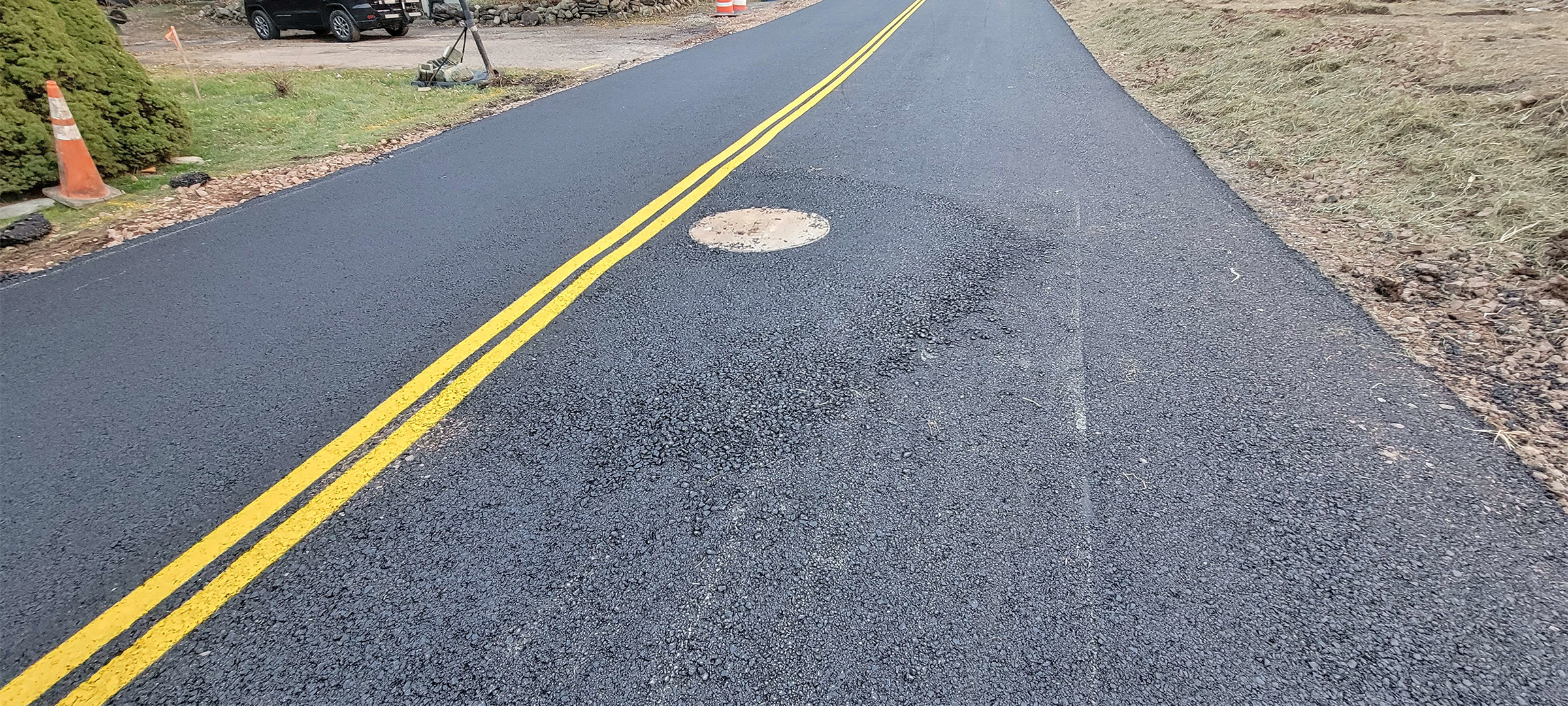 Base course paving at the intersection of Queen City Park Road and Austin Drive.