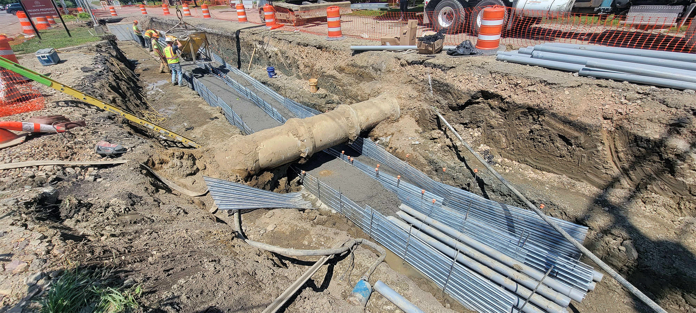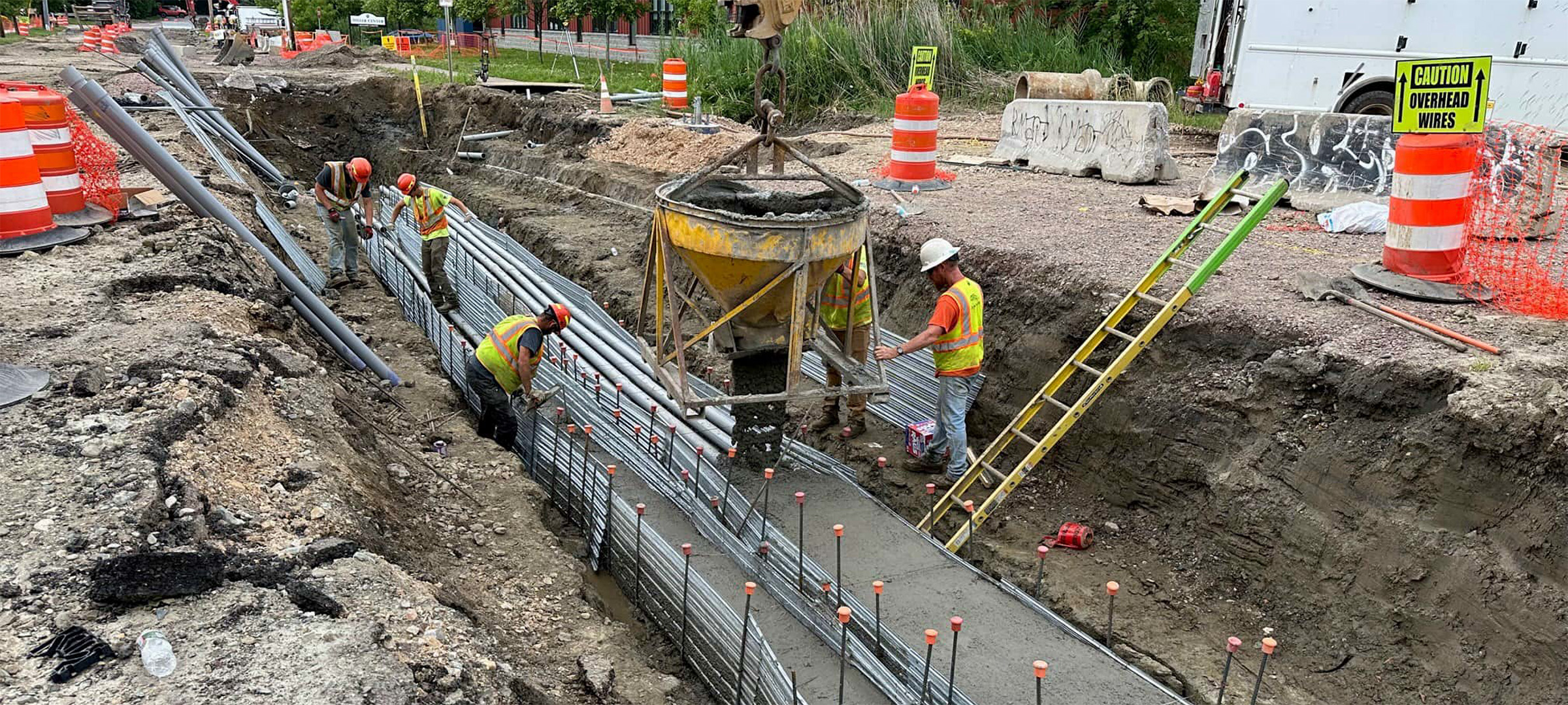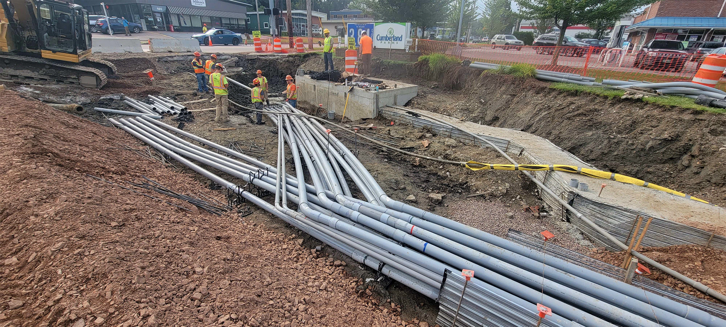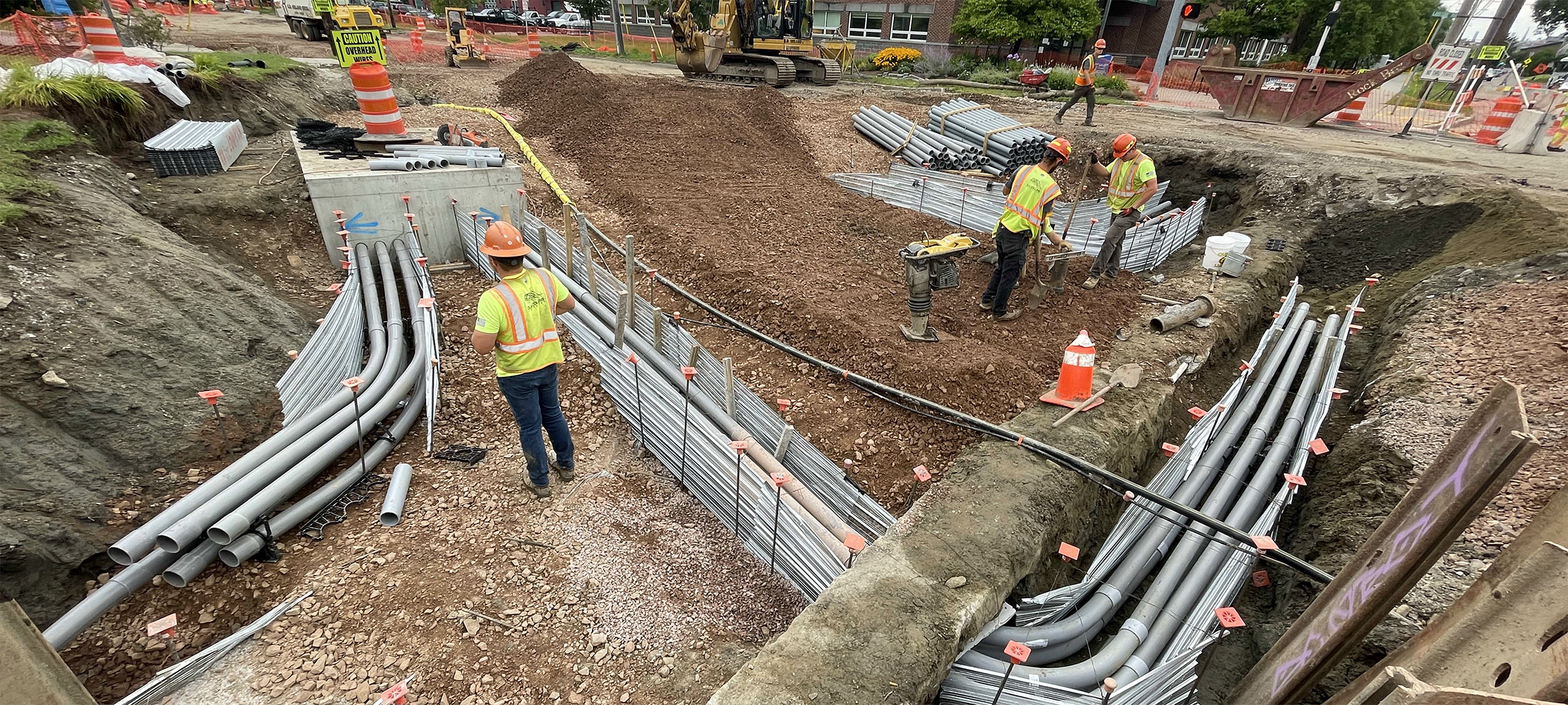 Installation of electrical duct bank on Lakeside Avenue near its intersection with Pine Street.