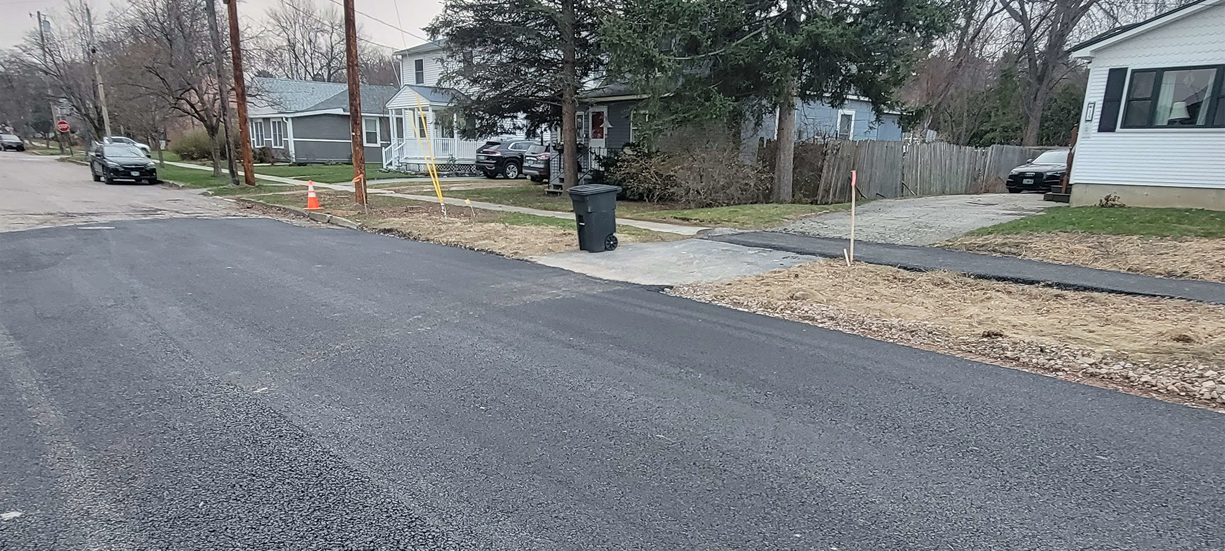 Base paving and temporary line striping along Home Avenue.