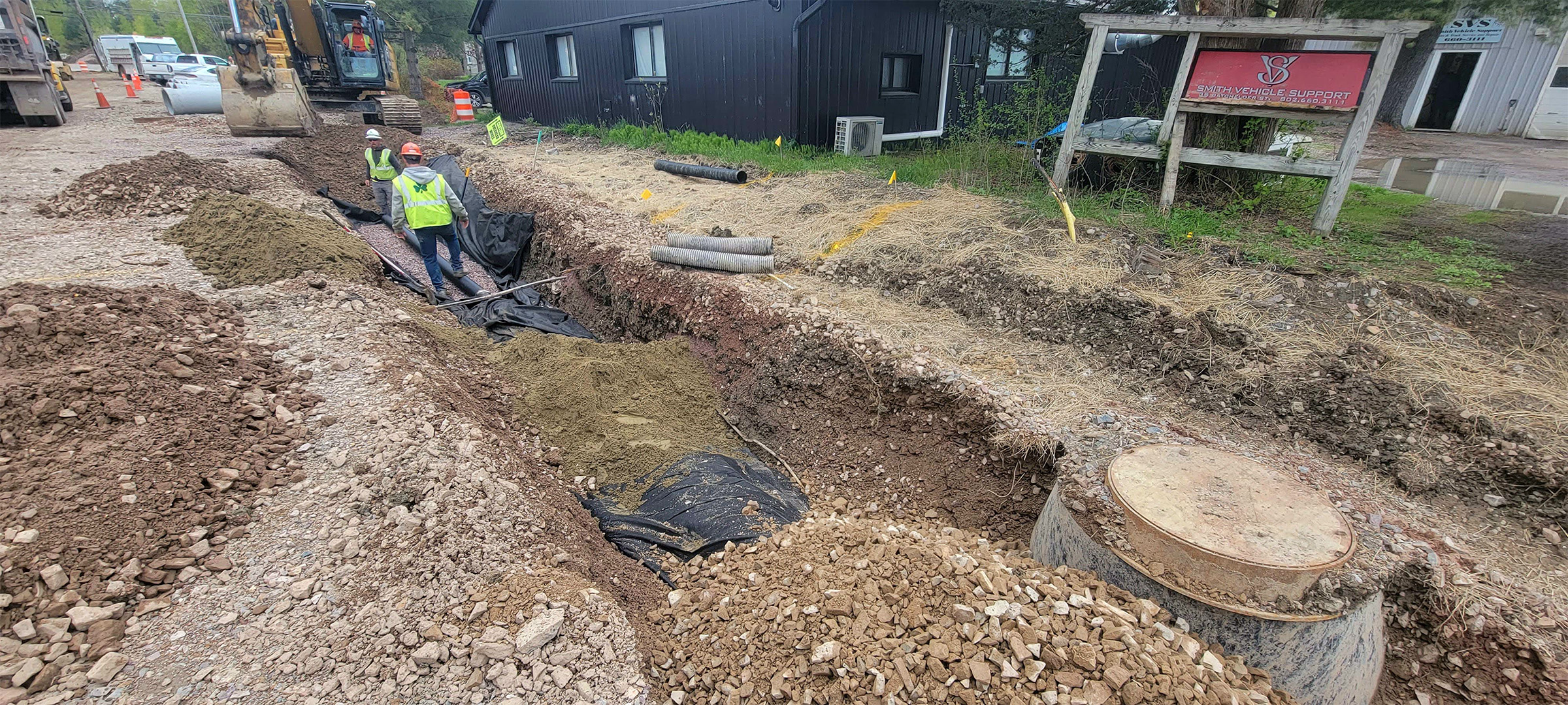 Sewer manhole installation along Lyman Avenue.