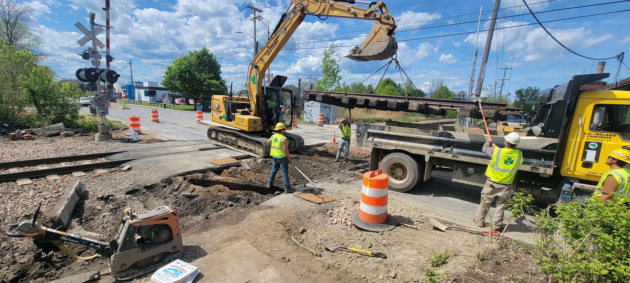 The installation of precast concrete panels for the railroad crossing at Flynn Avenue.