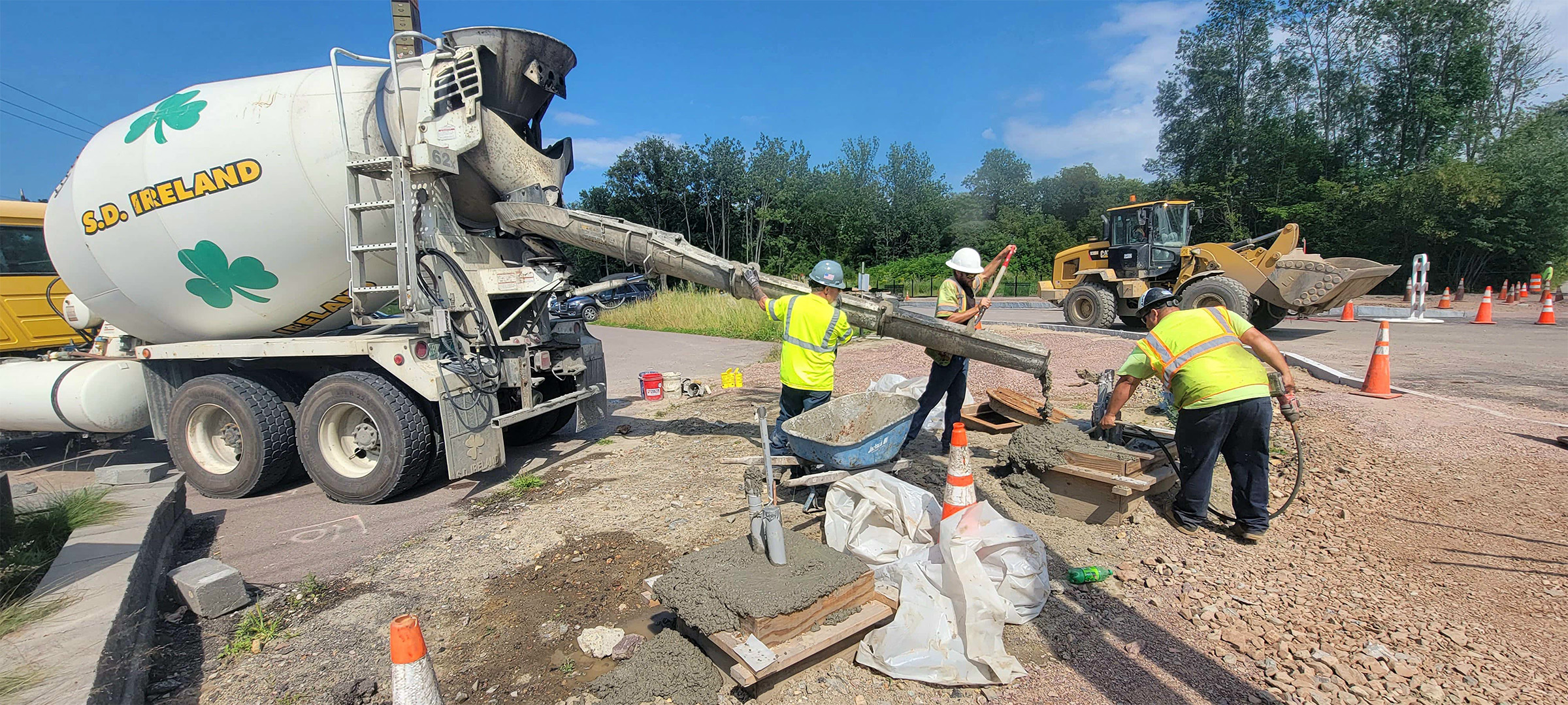 Placement of concrete to encase the electrical and communication duct banks installed at the intersection Lakeside Avenue and the Parkway.