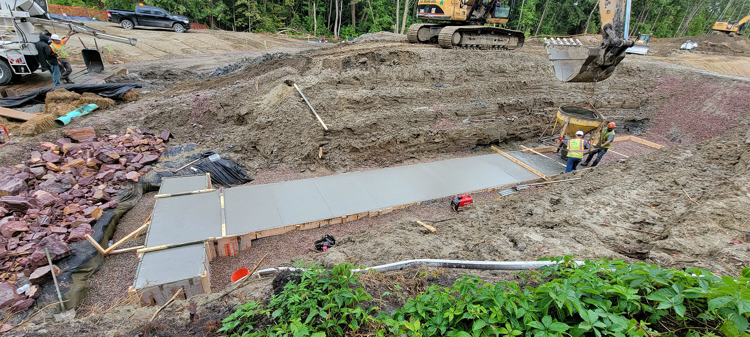 The Champlain Parkway included several stormwater features including the construction of a stormwater detention pond near Englesby Brook. Pictured concrete forms.