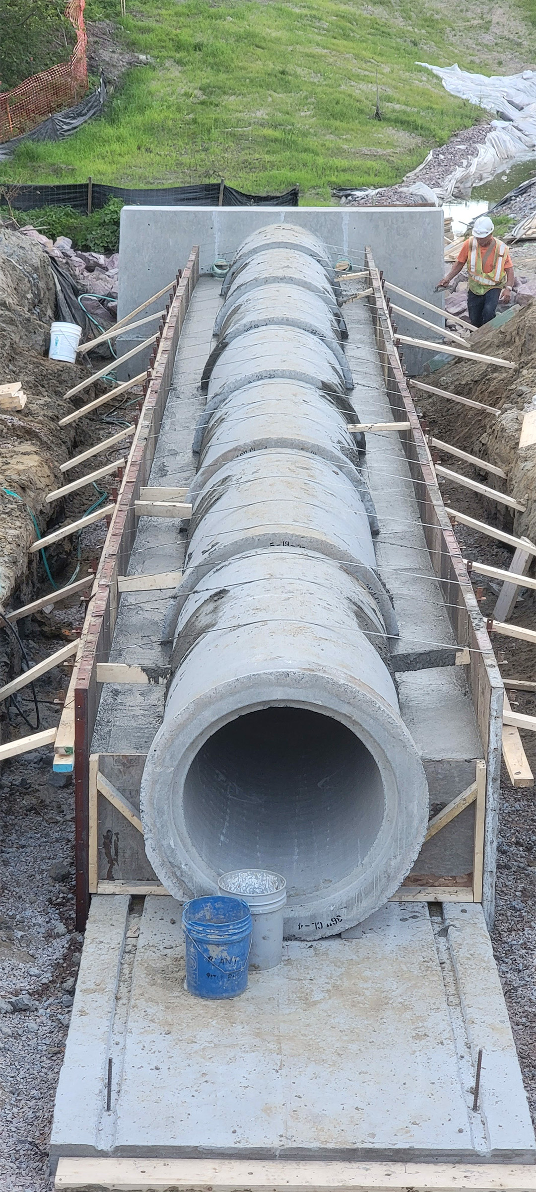 The Champlain Parkway included several stormwater features including the construction of a stormwater detention pond near Englesby Brook. Pictured pipe footing.