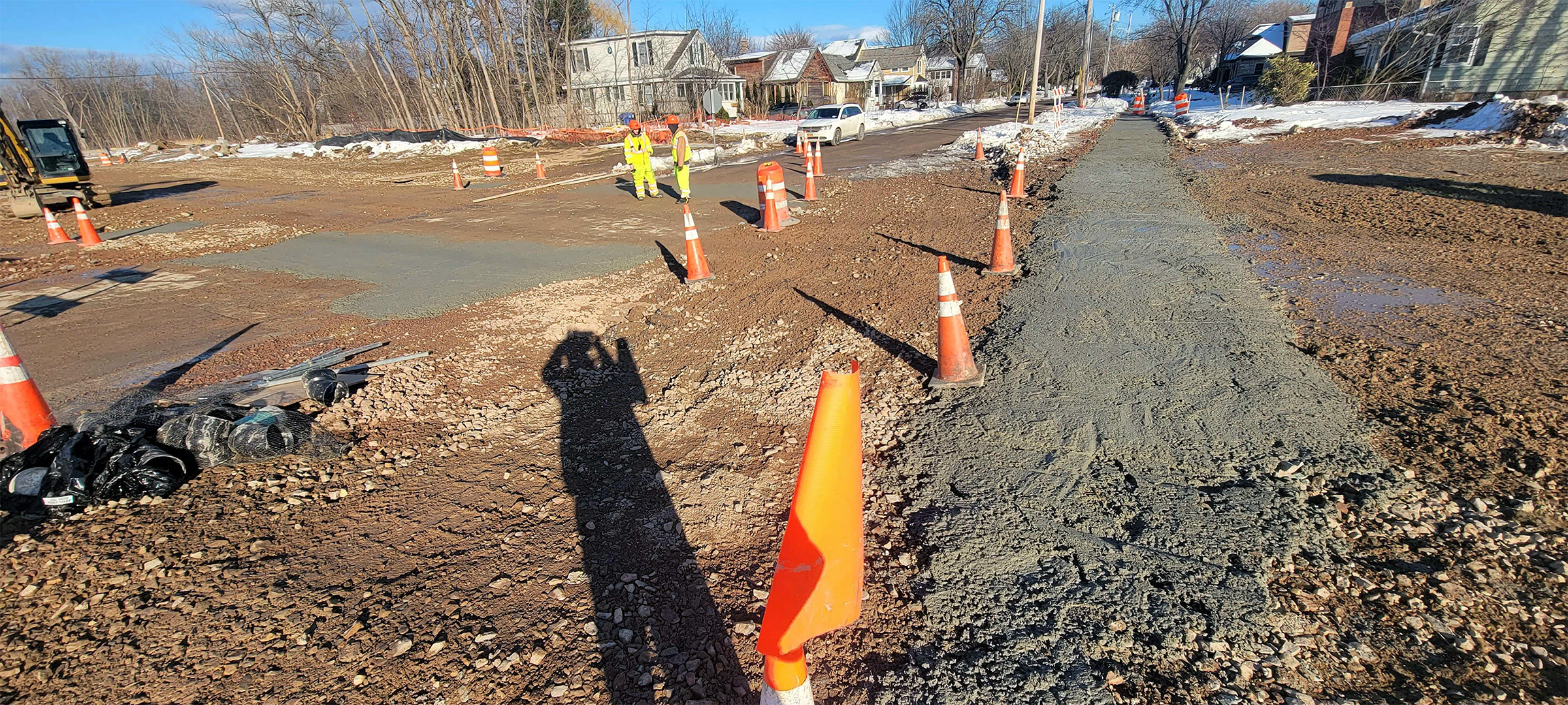 Installation of the new concrete sidewalk and drainage infrastructure on Pine Street just north of Kilburn Street.