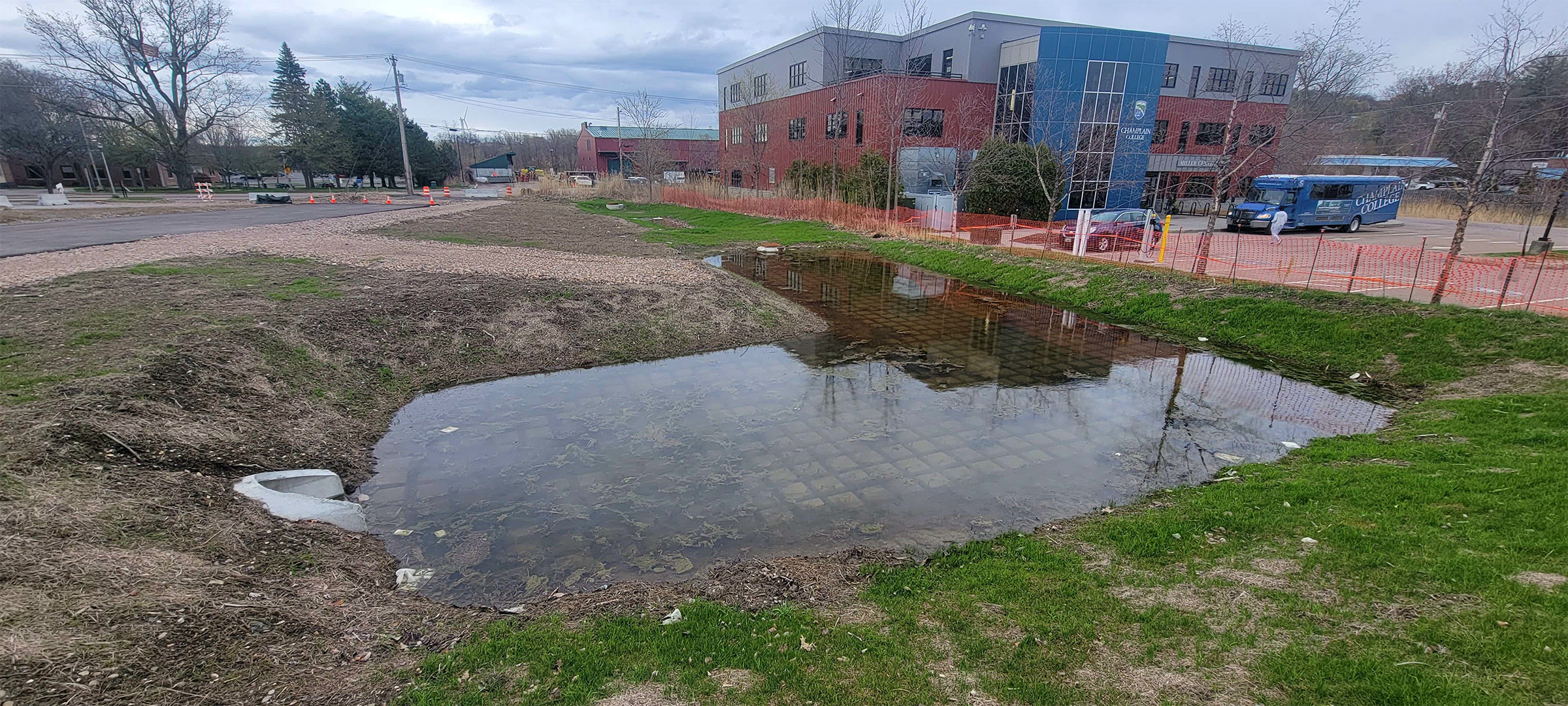 The Champlain Parkway included several stormwater features including a sand filter installed on Lakeside Avenue near the Champlain College Miller Building.