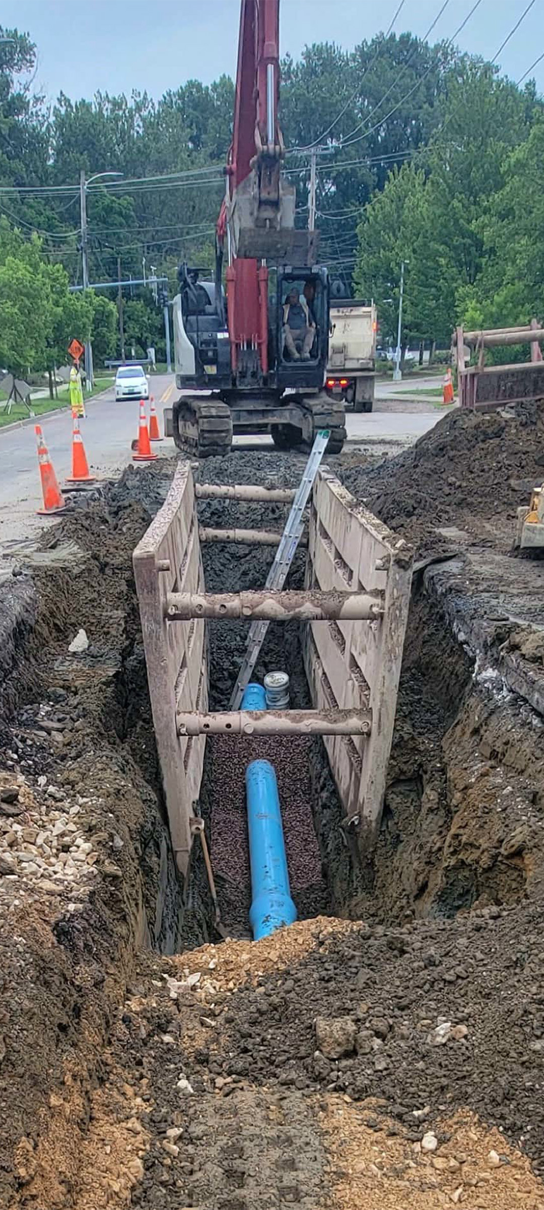 Installation of the electrical and communication duct bank along Pine Street just north of Lakeside Avenue.