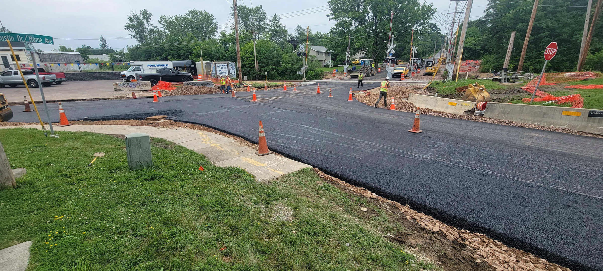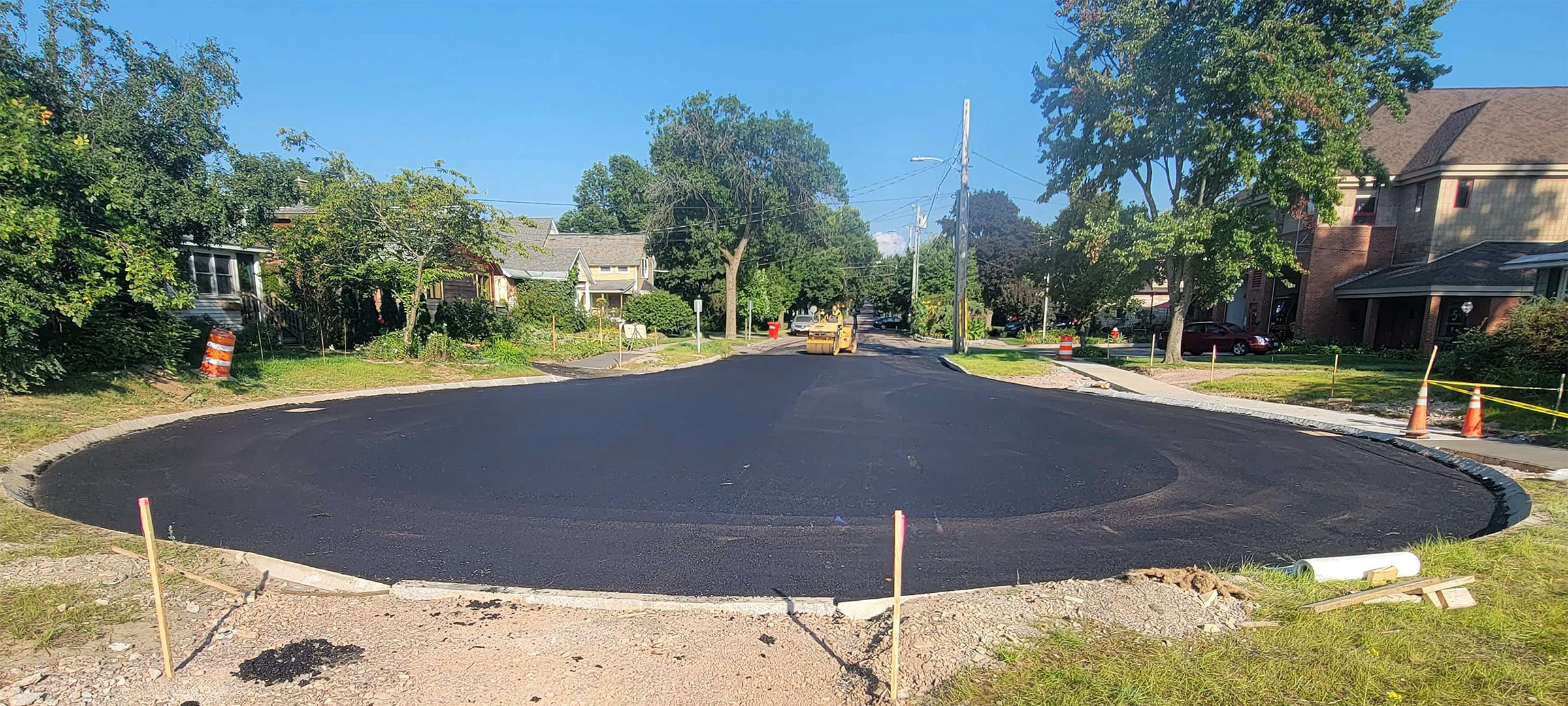 Base paving and temporary line striping along Home Avenue.