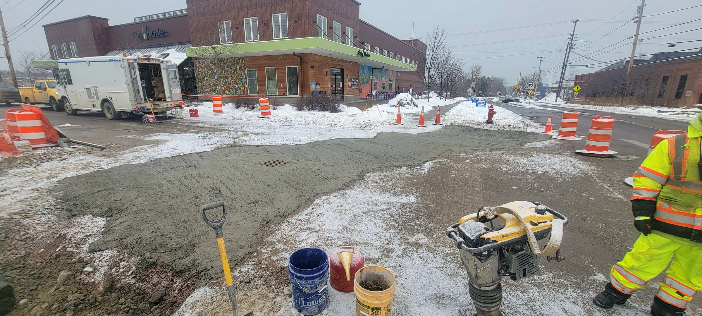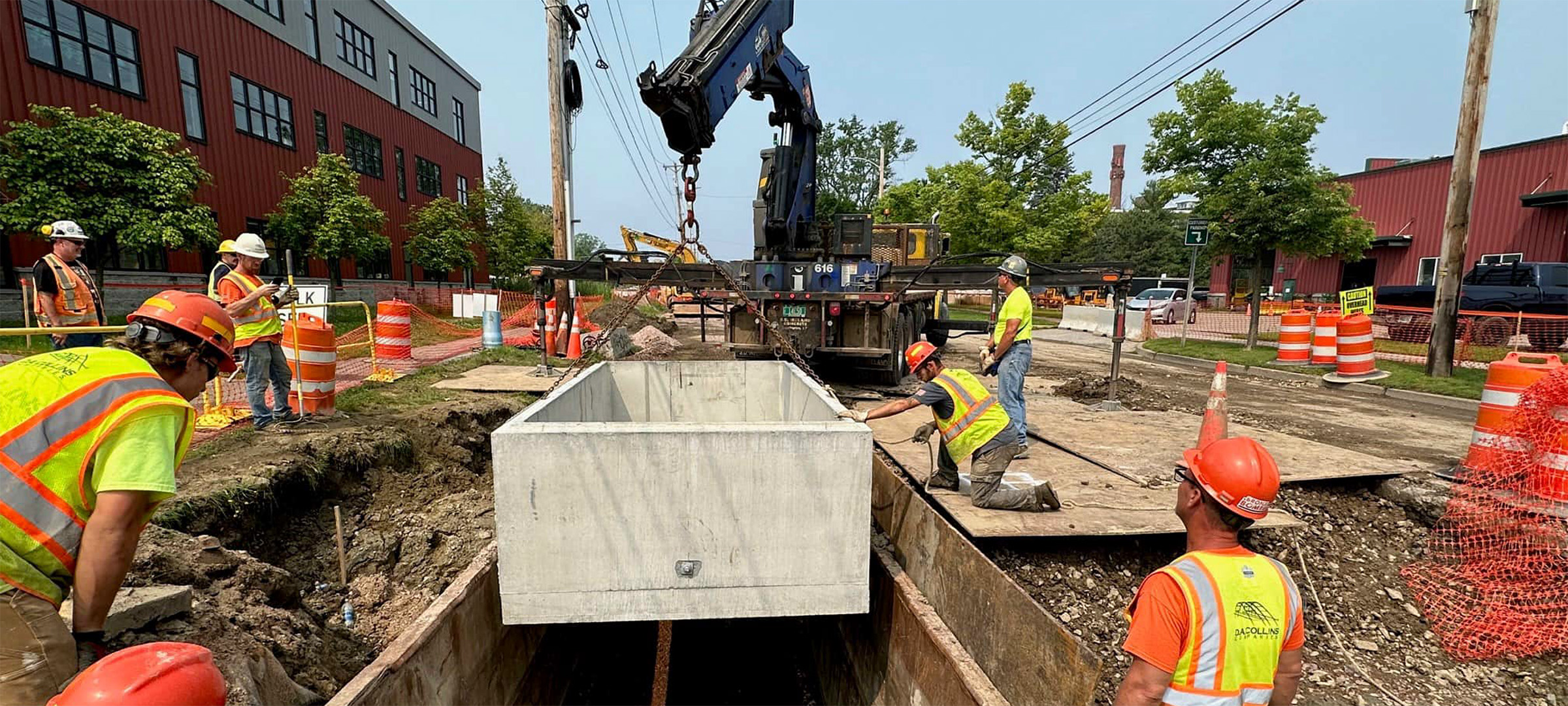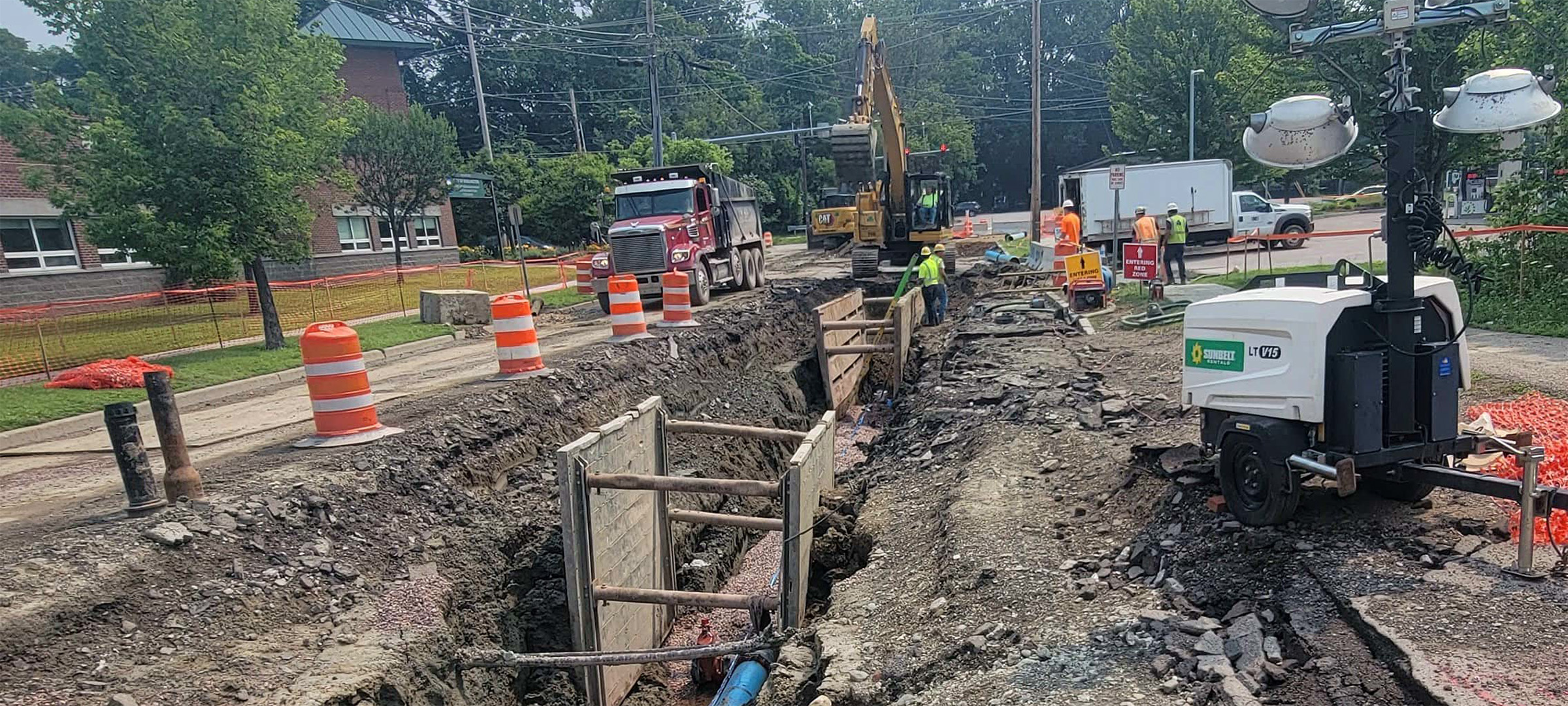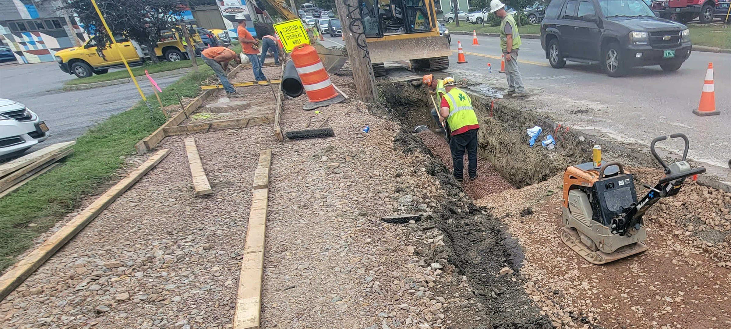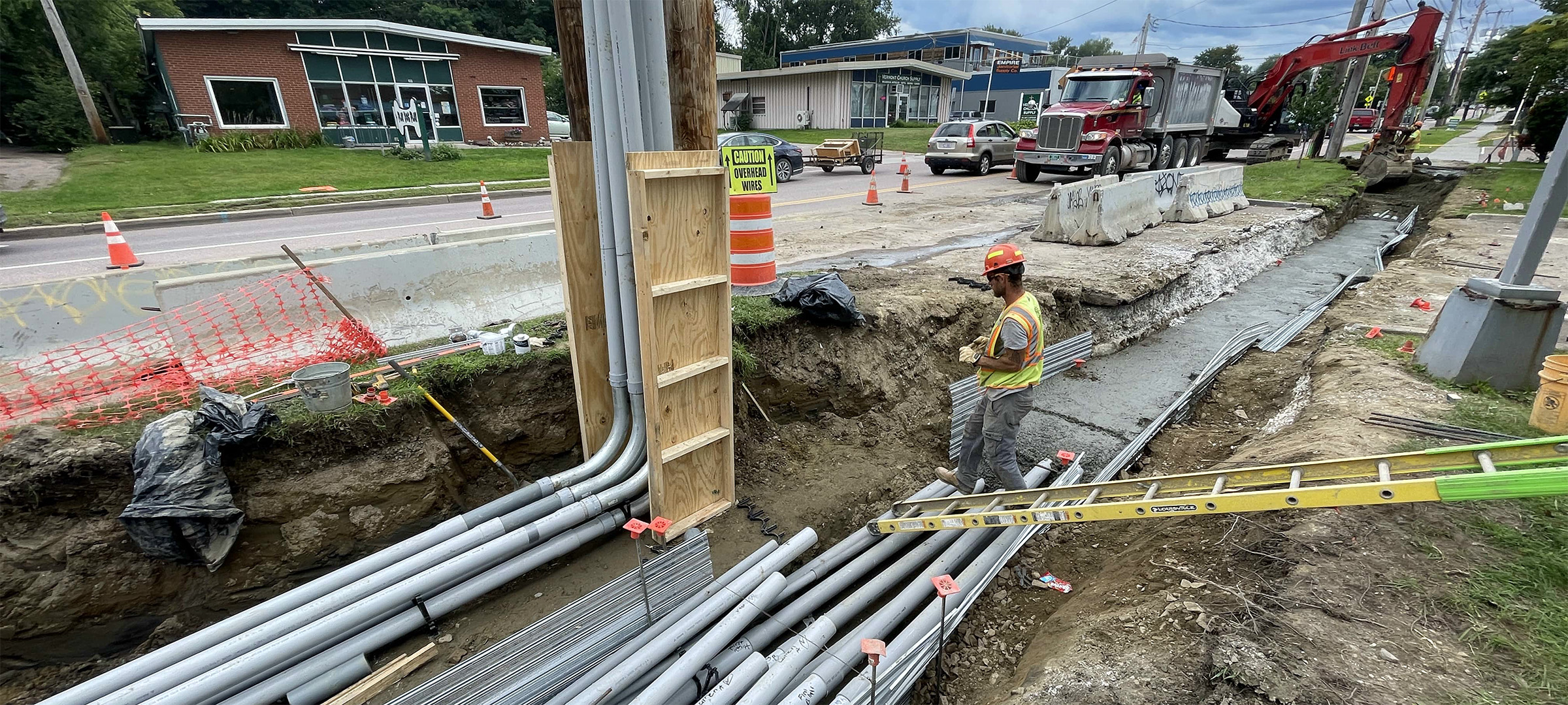 Installation of electrical duct bank on Lakeside Avenue near its intersection with Pine Street.