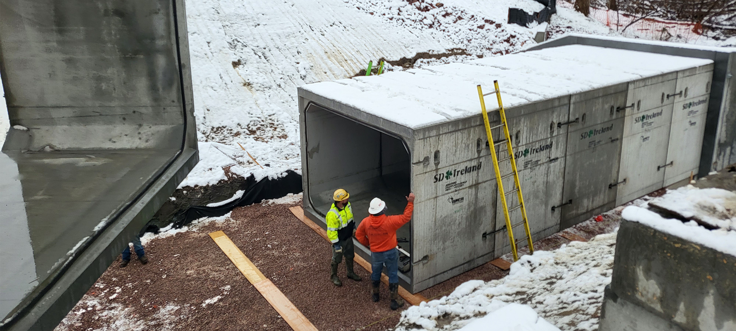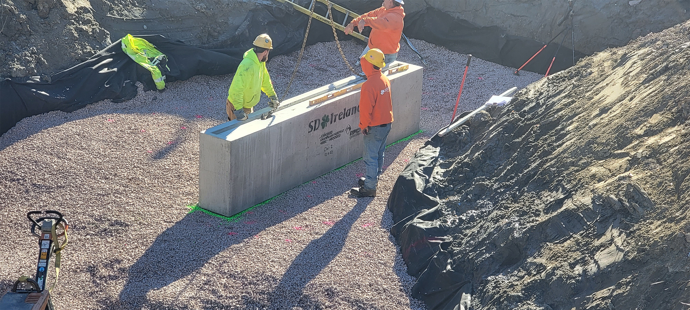 The Champlain Parkway Project includes several stormwater features including a box culvert for the Englesby Brook. Pictured placement of the precast box culvert segments.