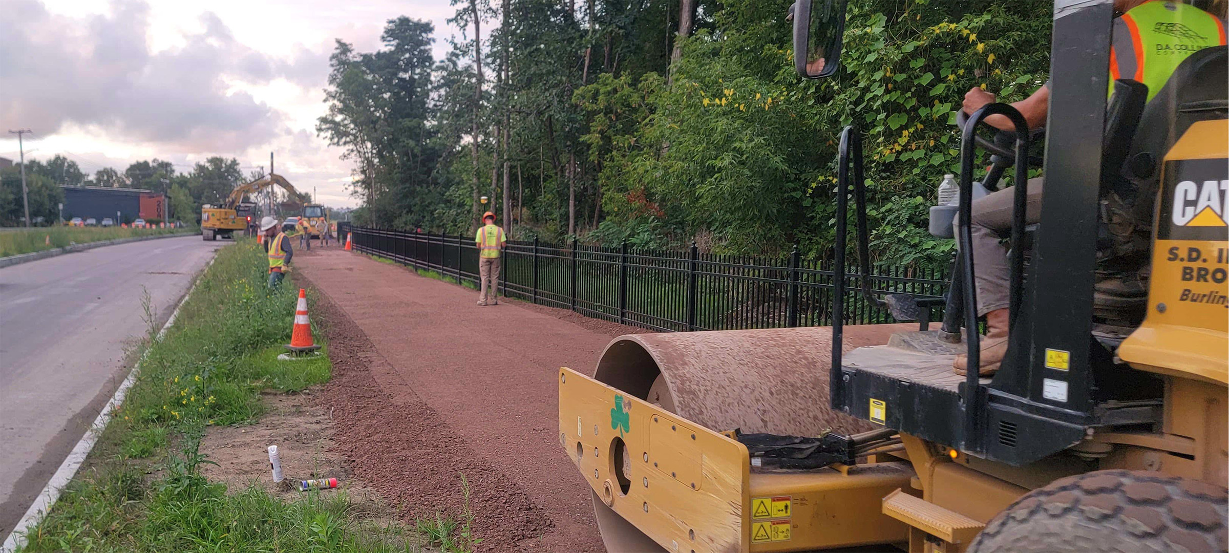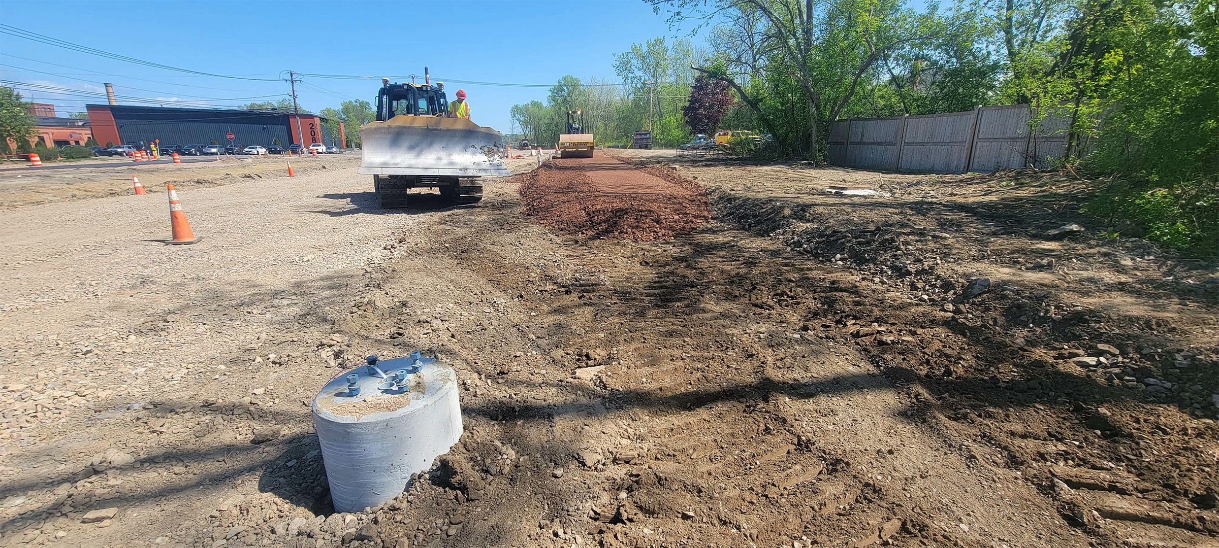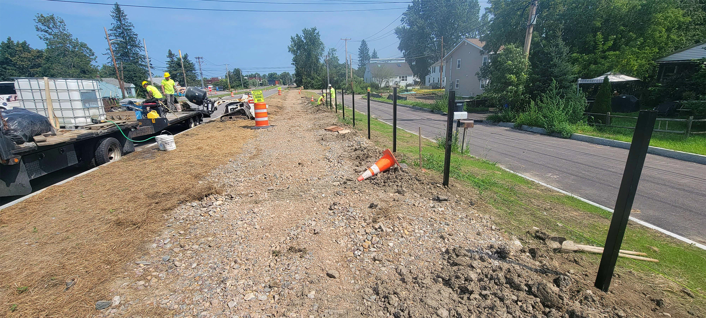 Grading the shared use path along Pine Street in preparation for the installation dense grade subbase material.