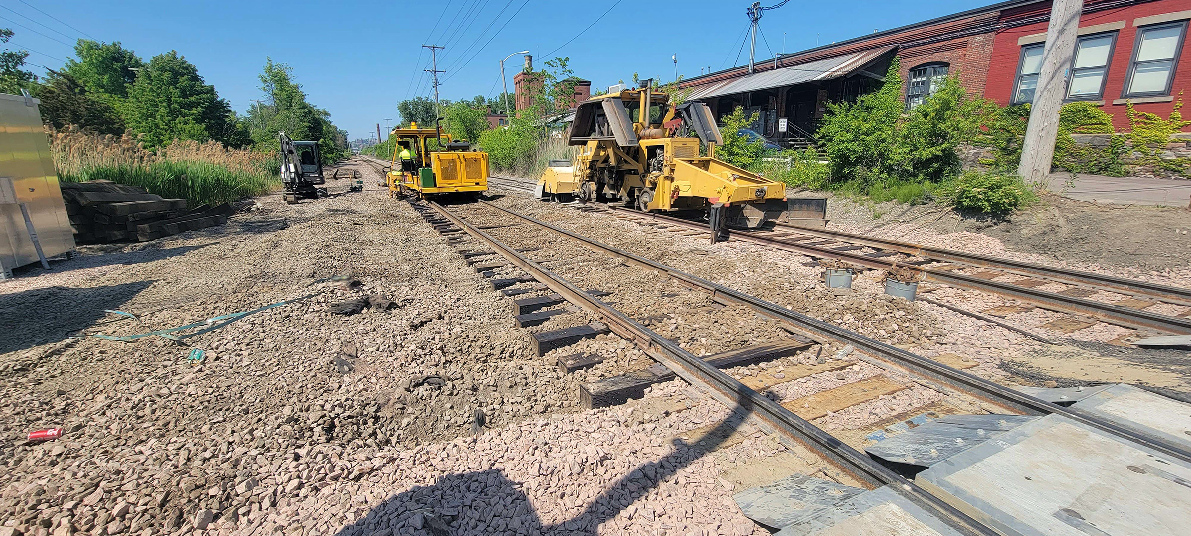 Adjusting the surface tracks just north of the Flynn Avenue railroad crossing.