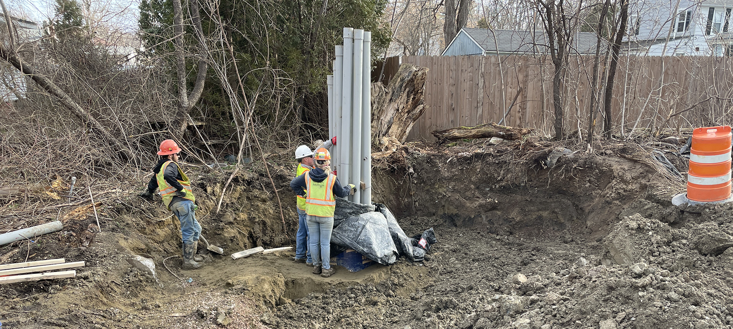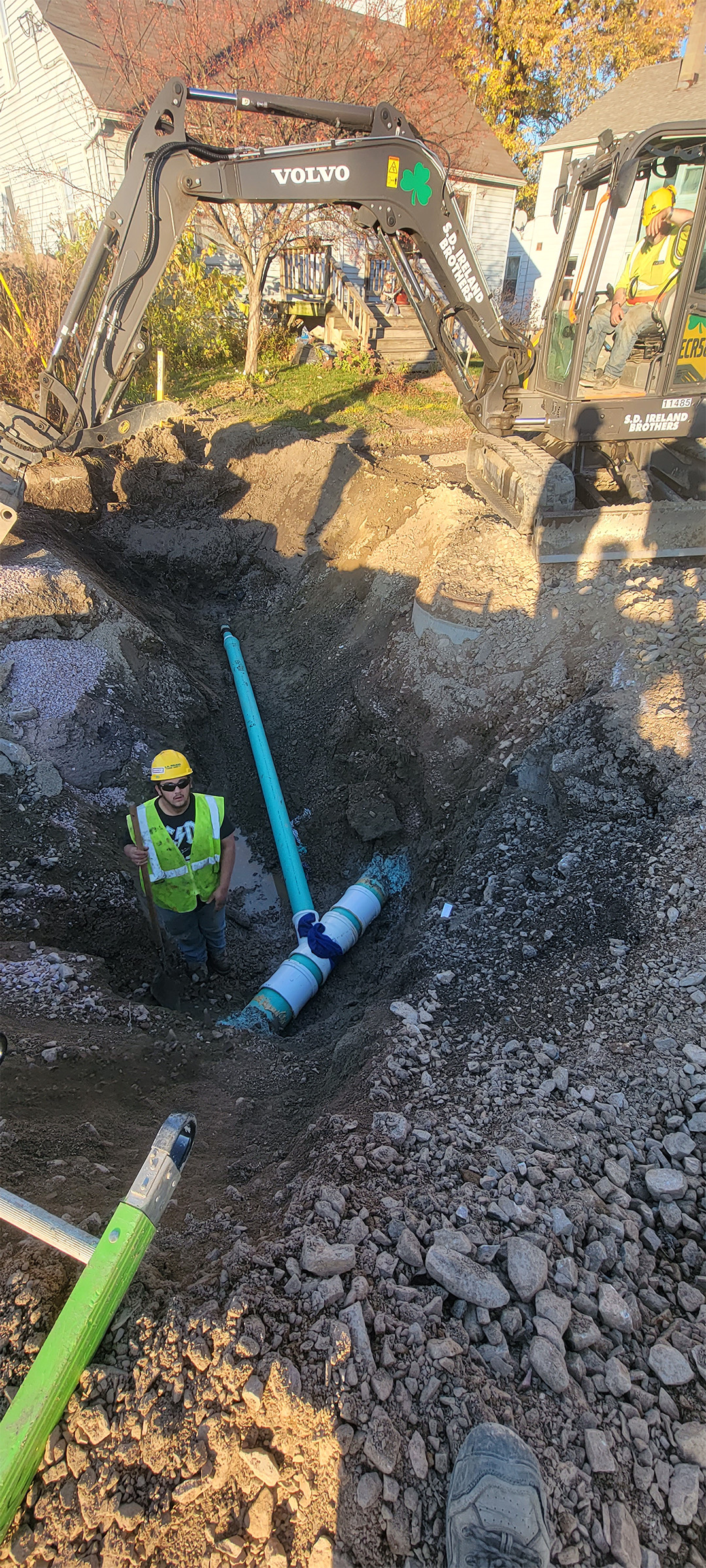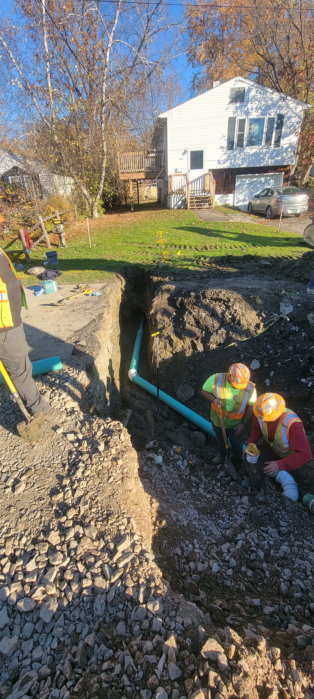 Crews install new sewer line and services throughout the south end to replace existing aging infrastructure. New sewer service installation on Morse Place.