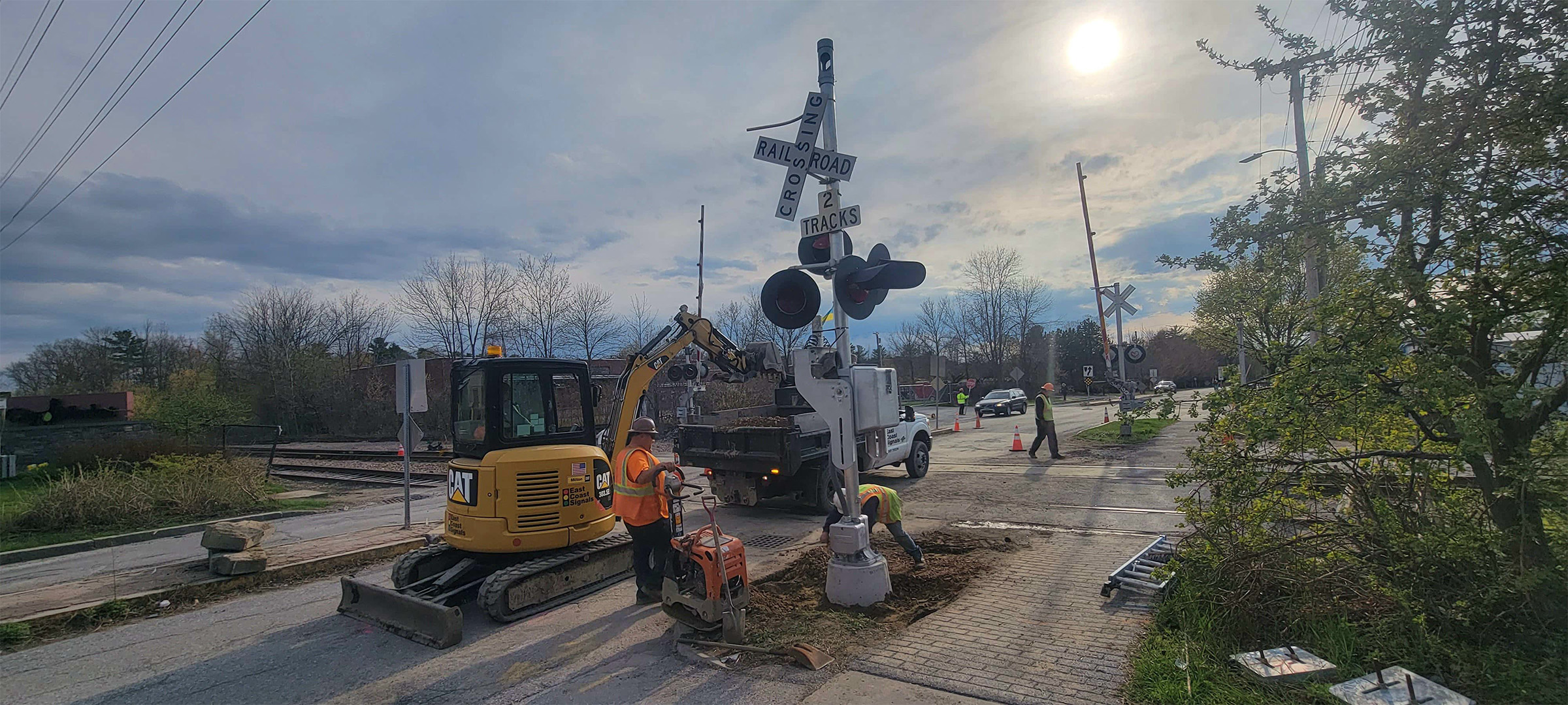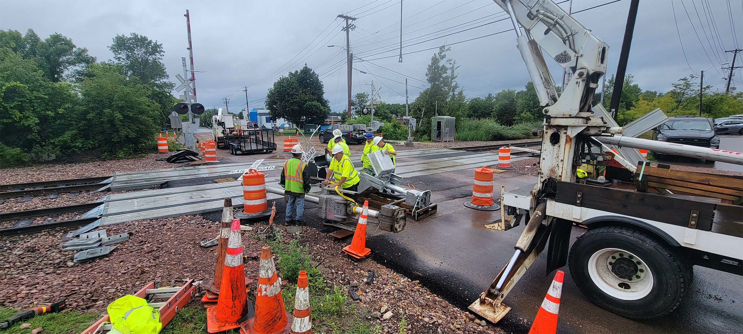 Installation of the new railroad crossing signal and gates at the Flynn Avenue railroad crossing.