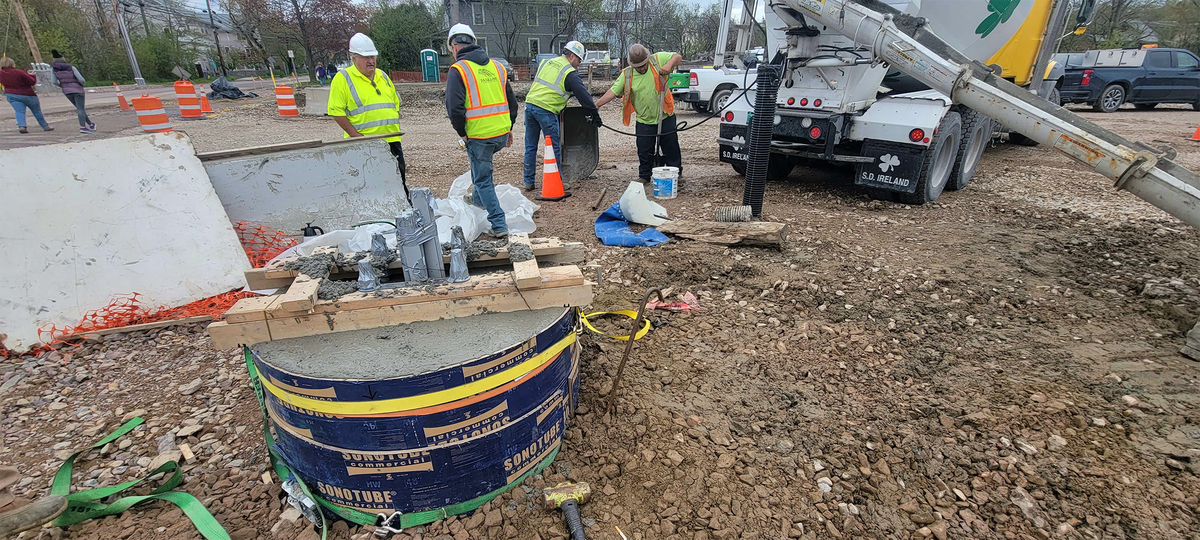Placement of concrete to encase the electrical and communication duct banks installed at the intersection Lakeside Avenue and the Parkway.