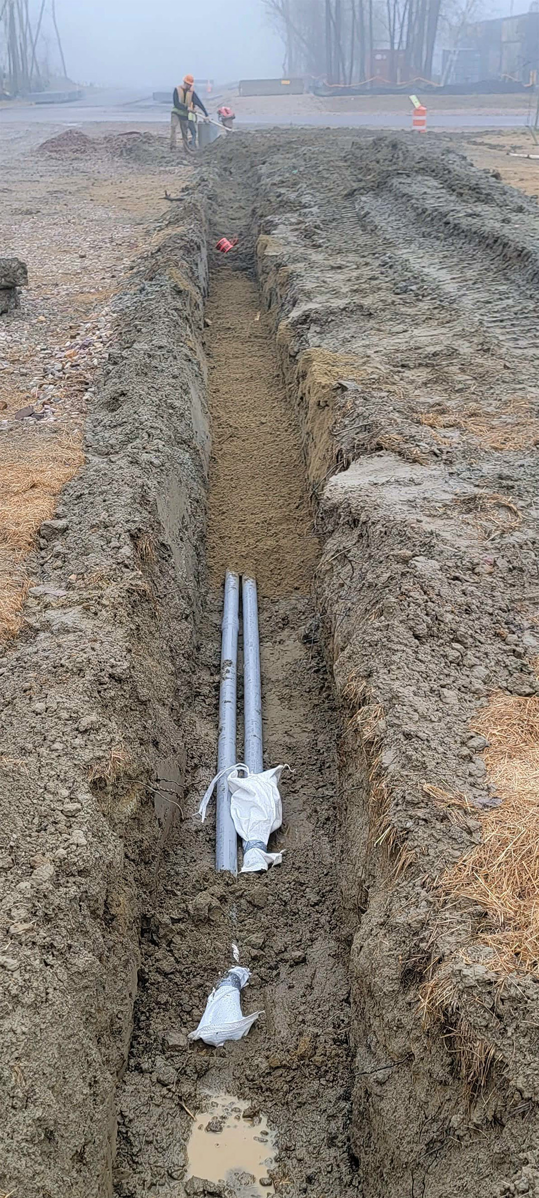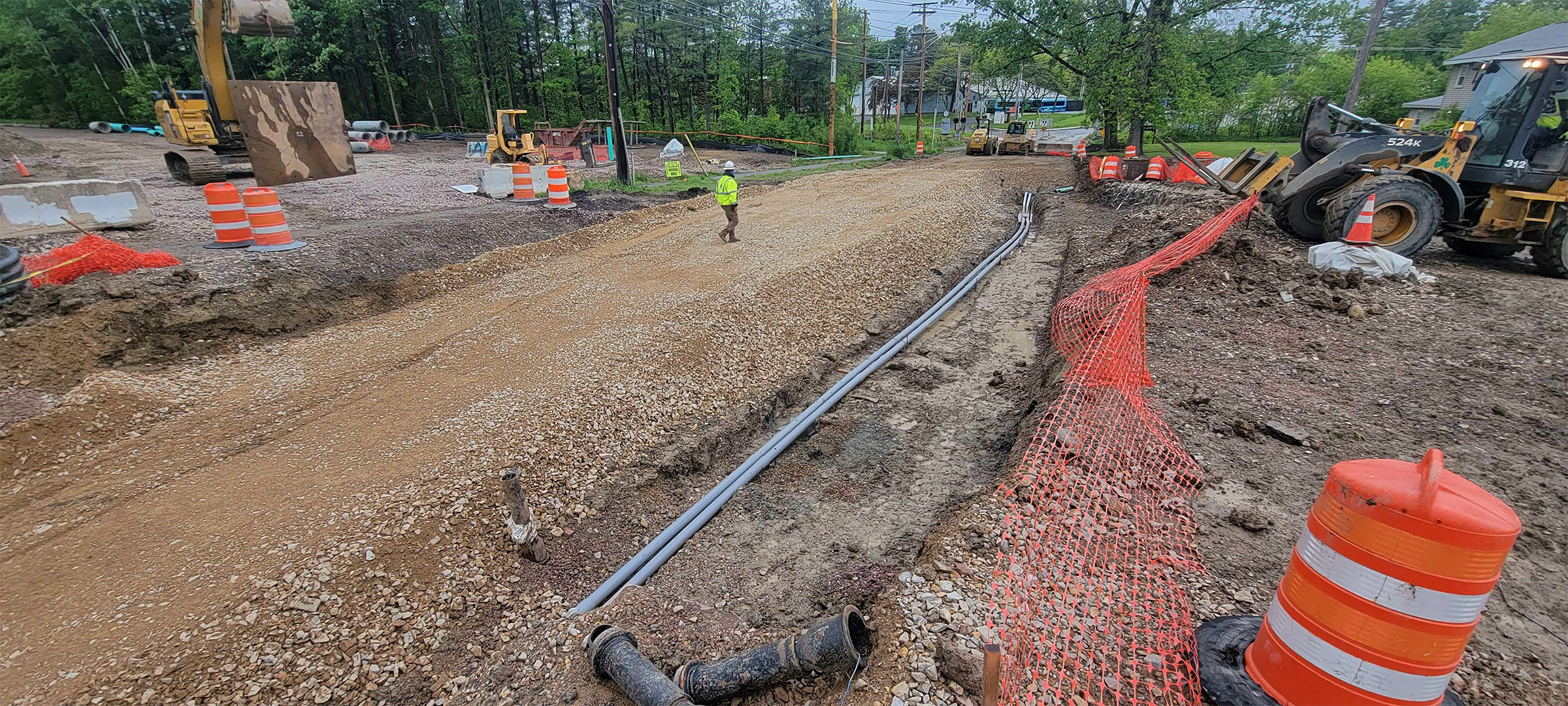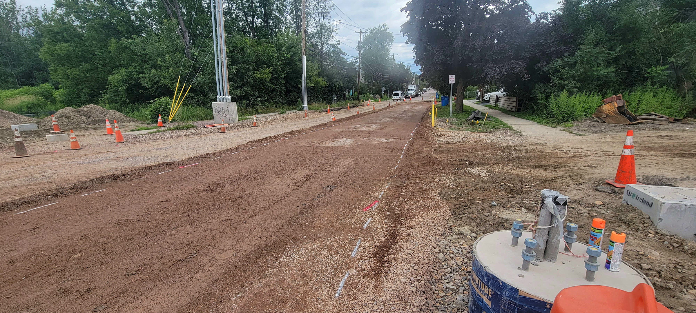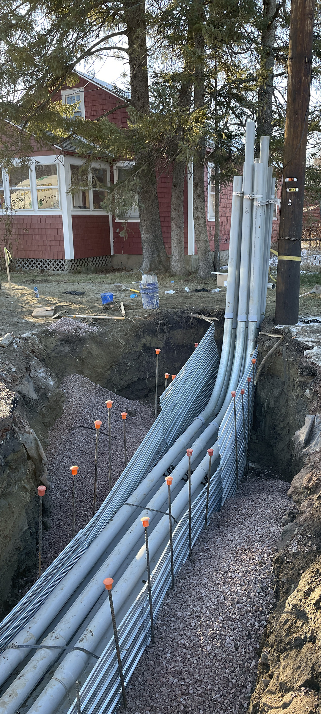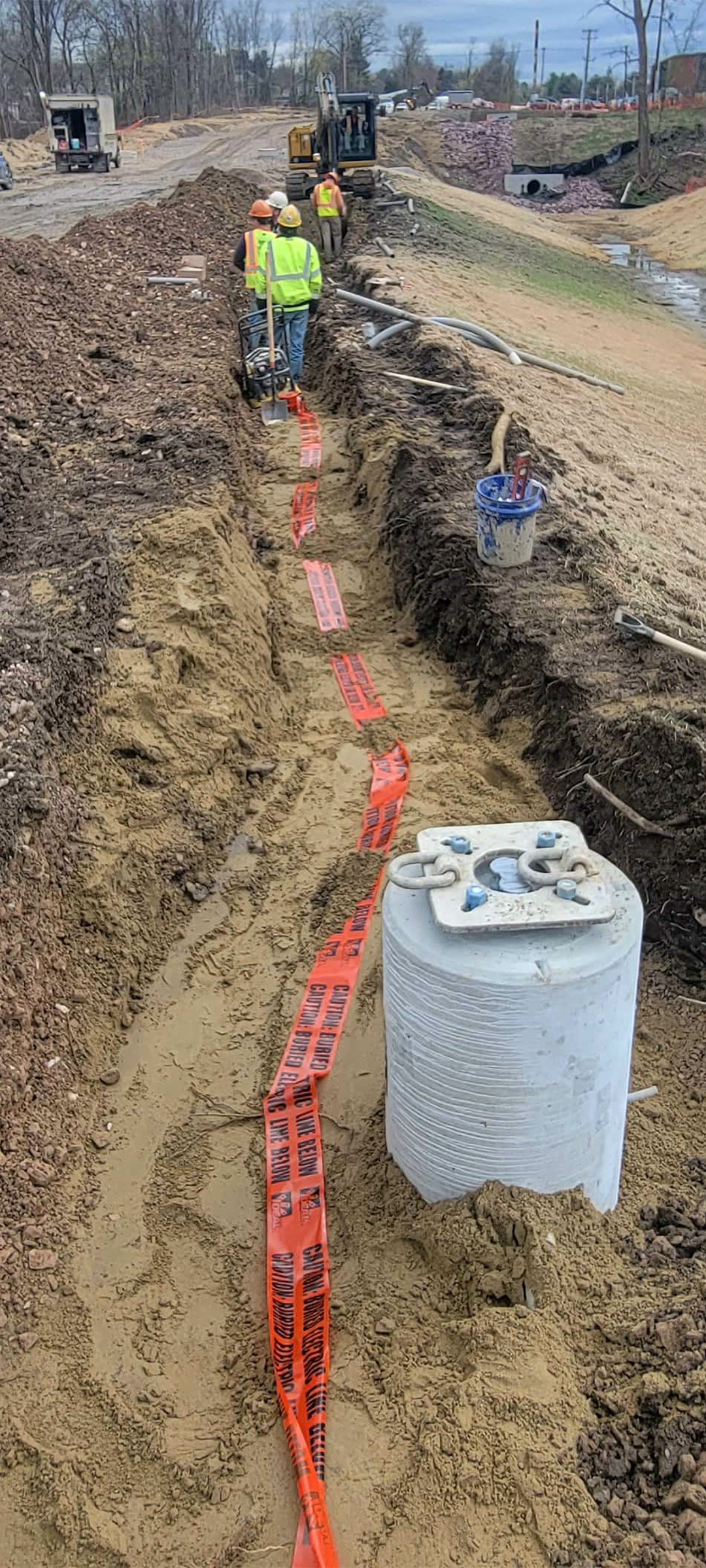 Installation of the electrical and communication duct bank along Pine Street just north of Lakeside Avenue.