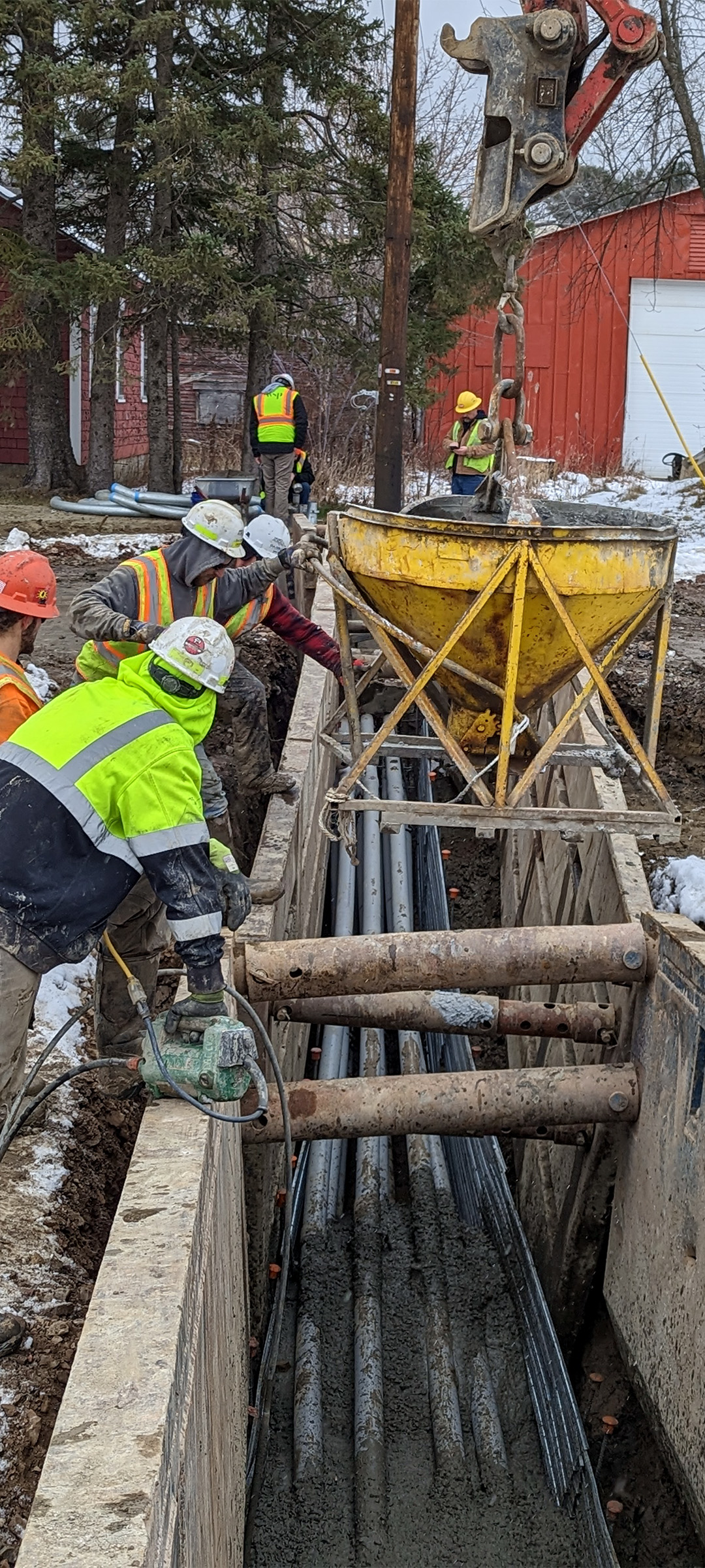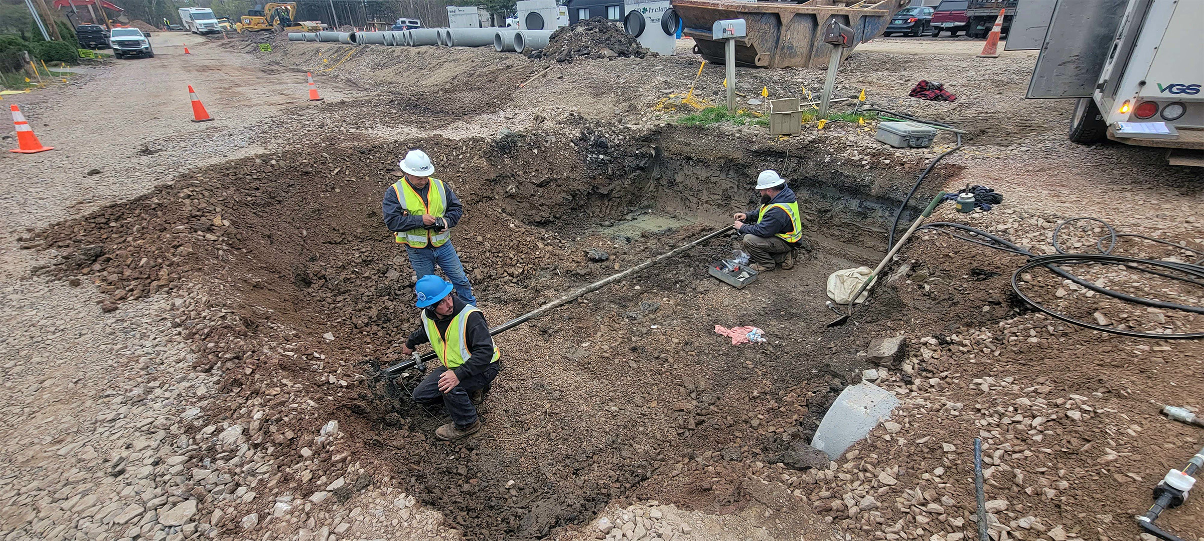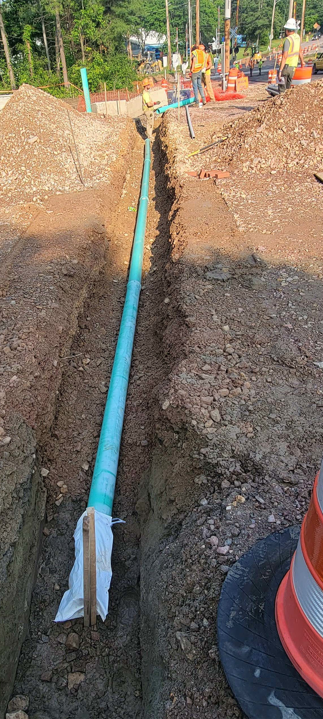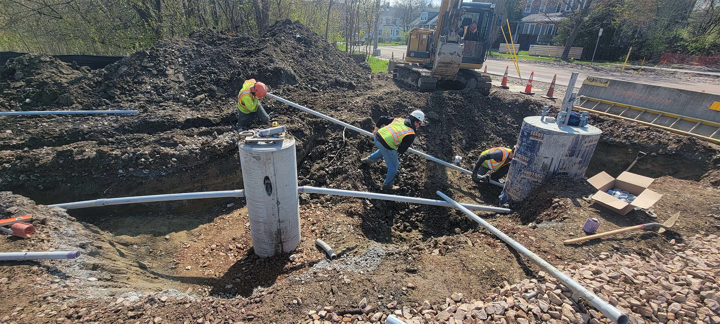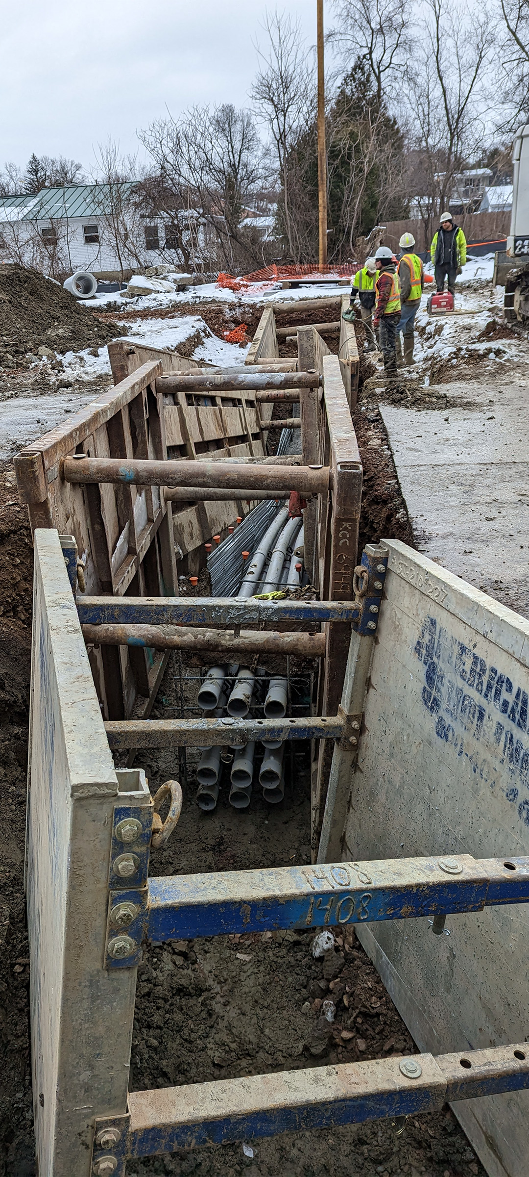 Installation of the electrical and communication duct bank along Pine Street just north of Lakeside Avenue.