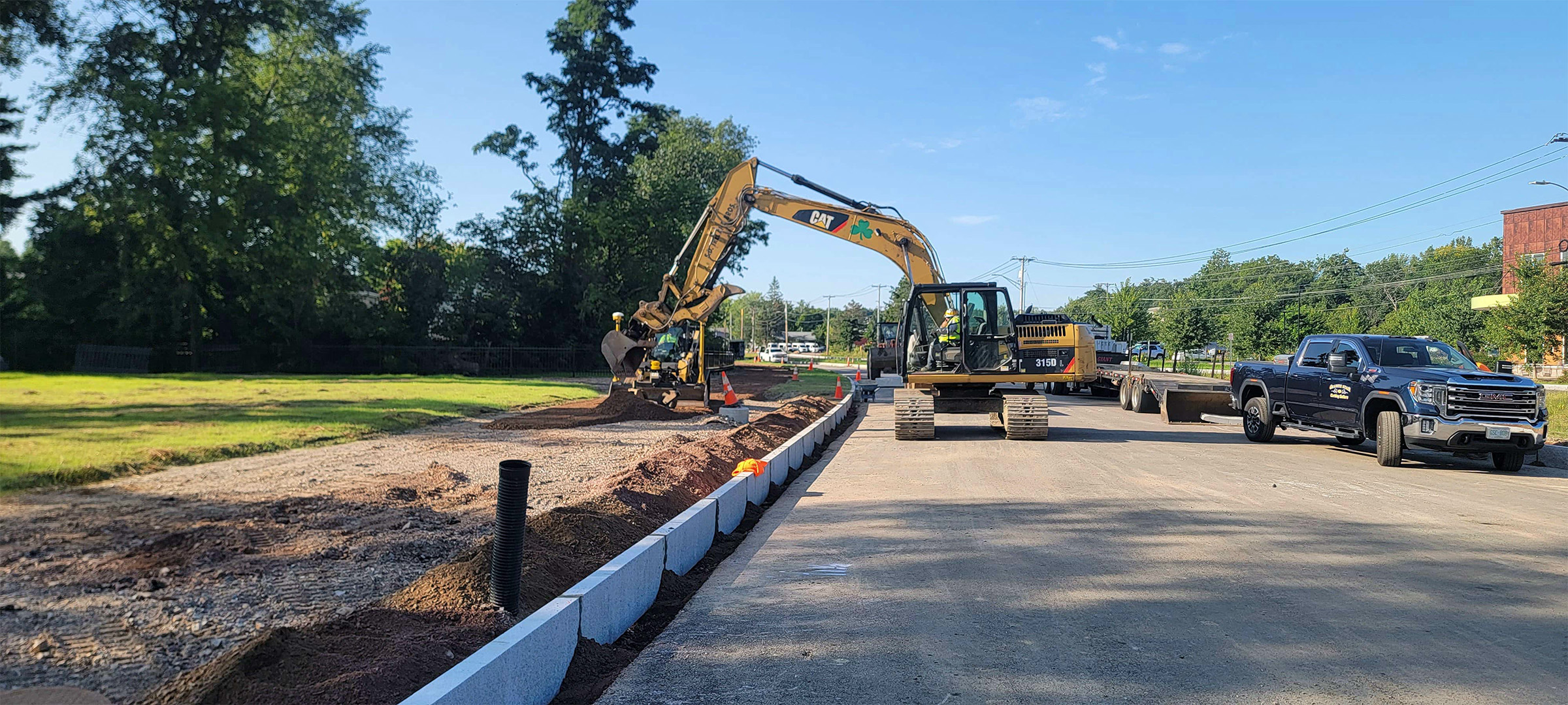 Removing the existing curb and placing subbase materials along the east side of Pine Street in preparation for the installation of new granite curb.