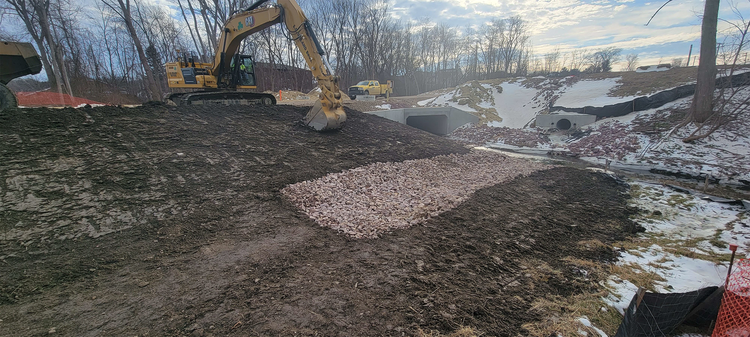 Installation of the access road to the Englesby Detention Pond.