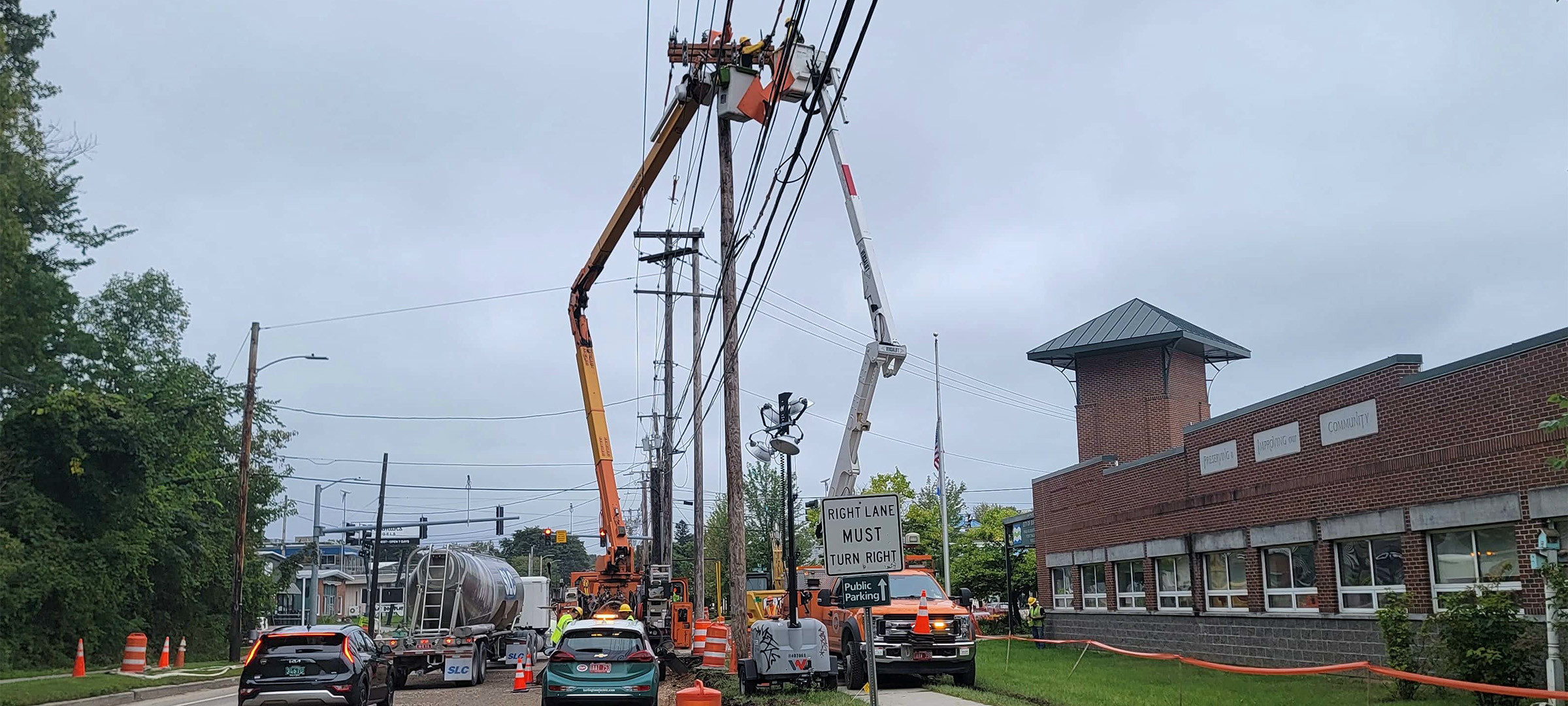 Process of relocating the power lines from overhead and running them through the underground duct banks at the intersection of Pine Street at Lakeside Avenue.