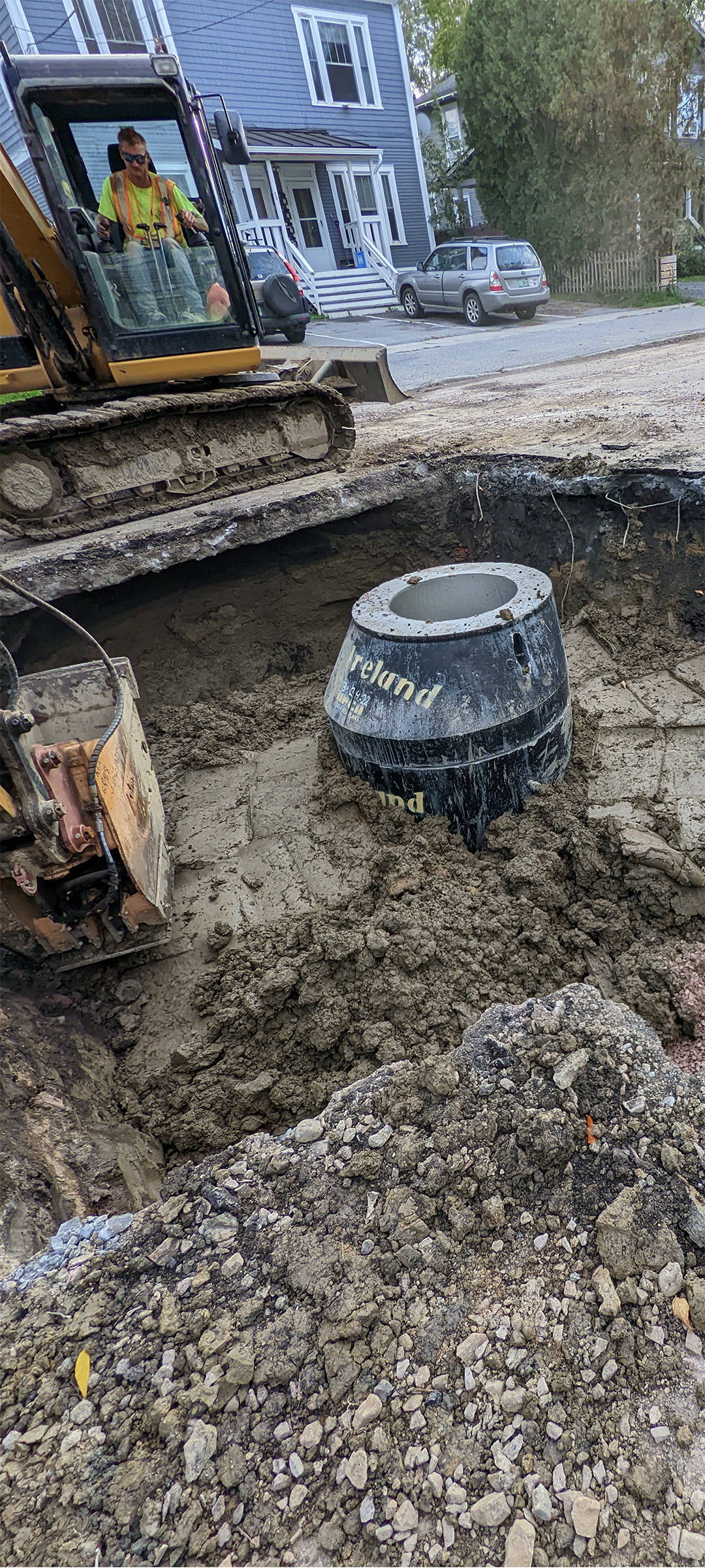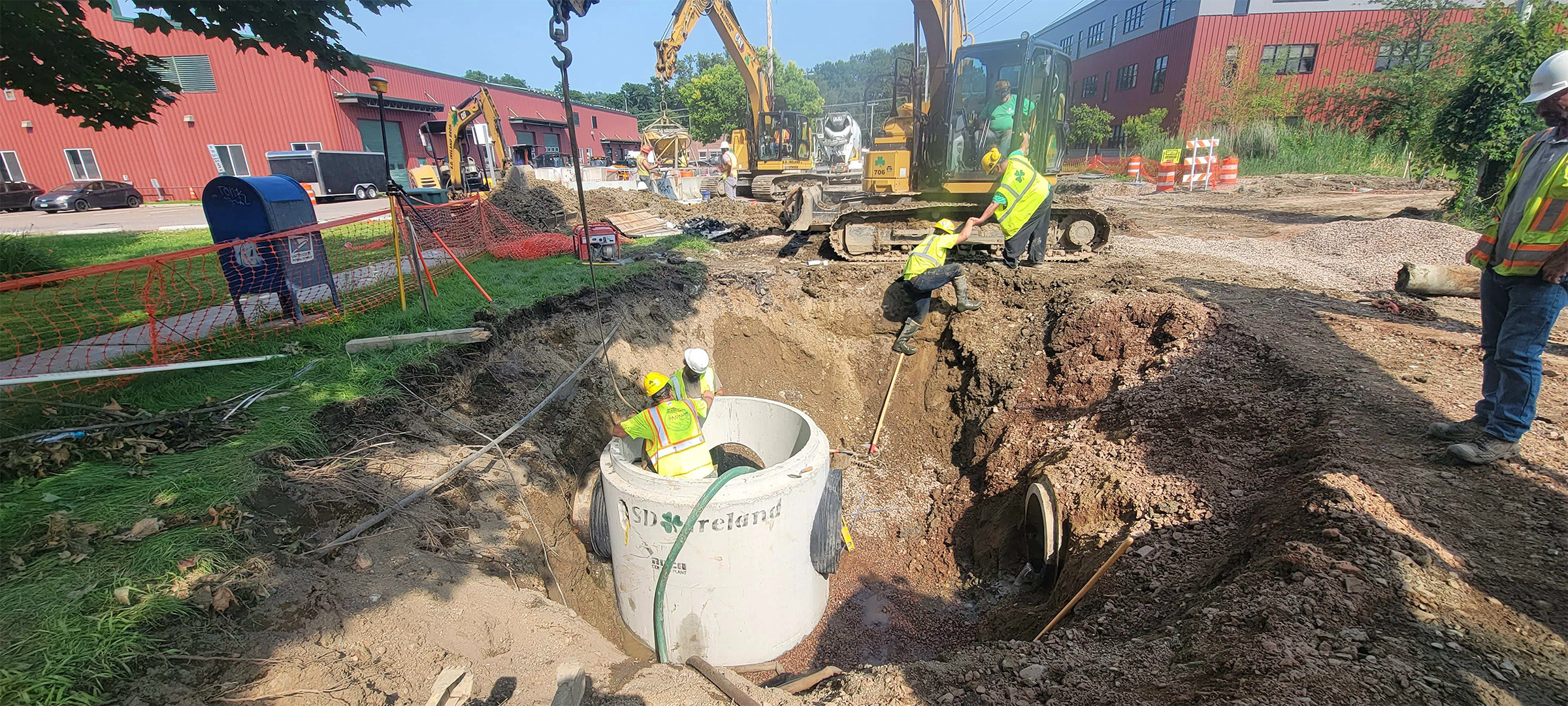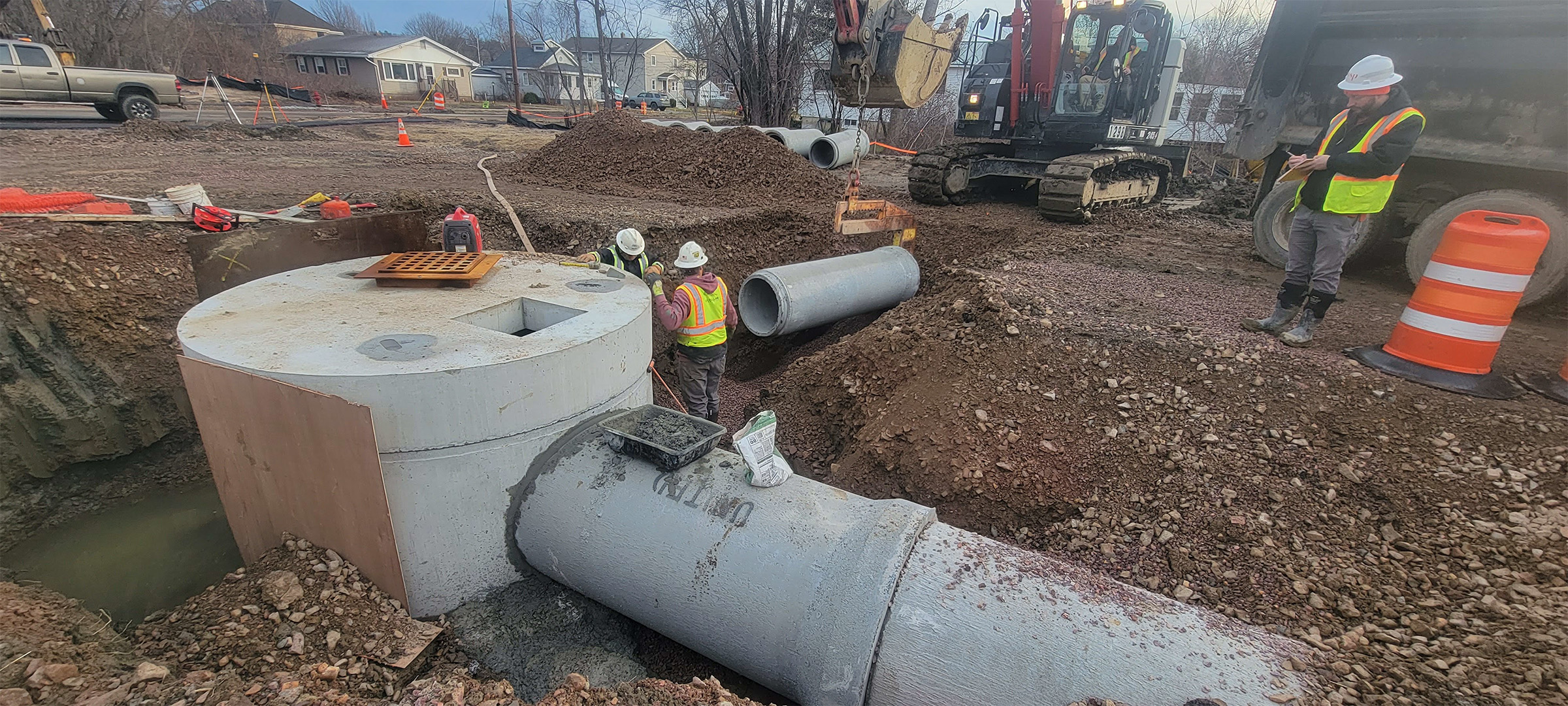 Sewer manhole installation along Lyman Avenue.