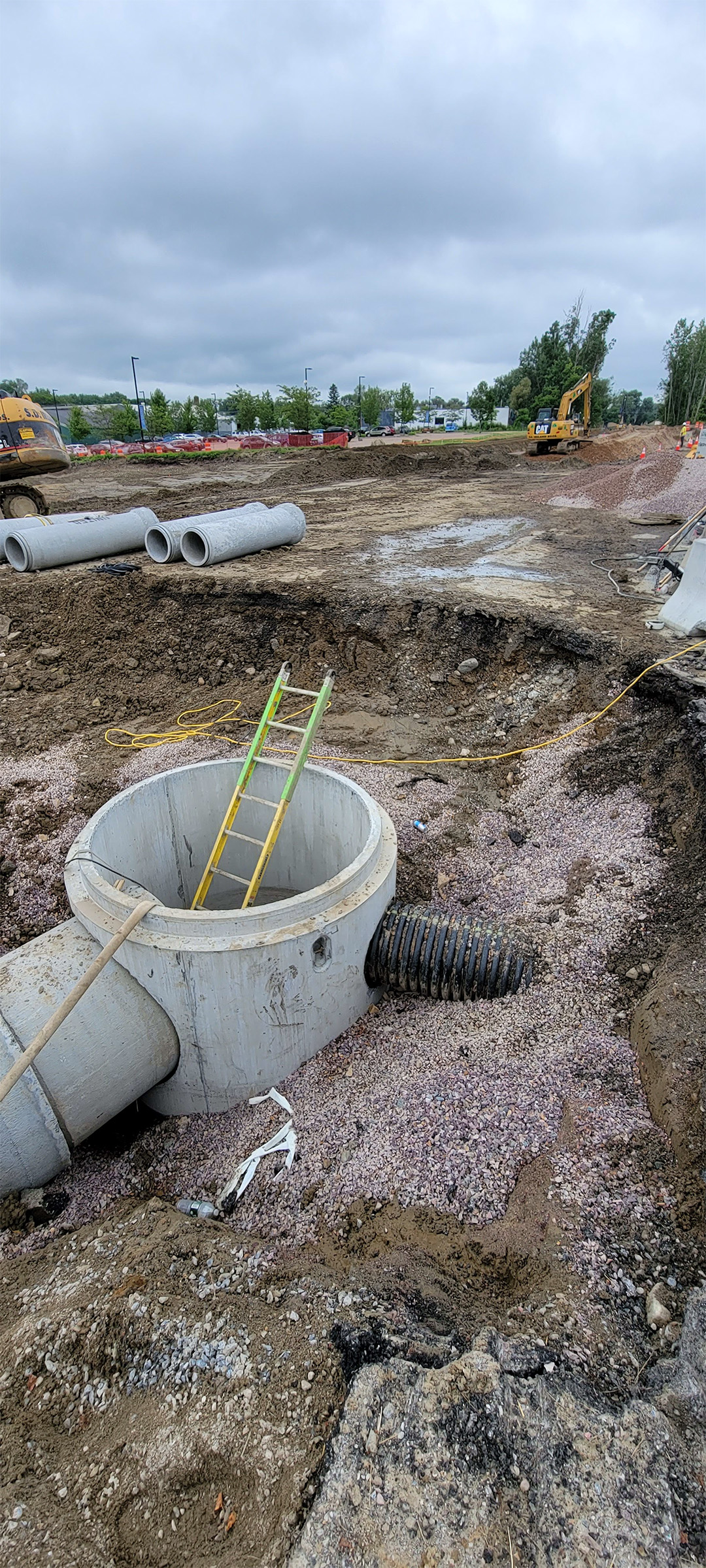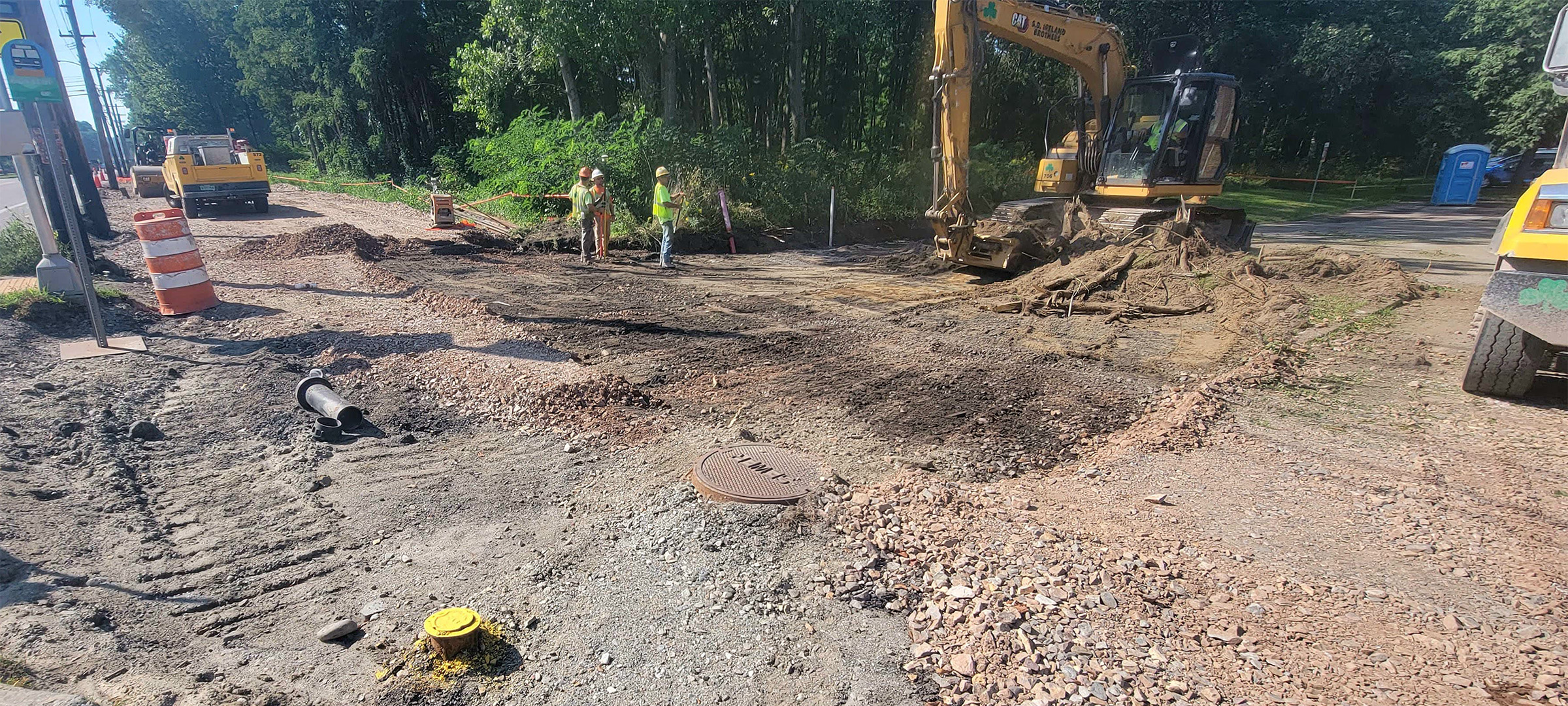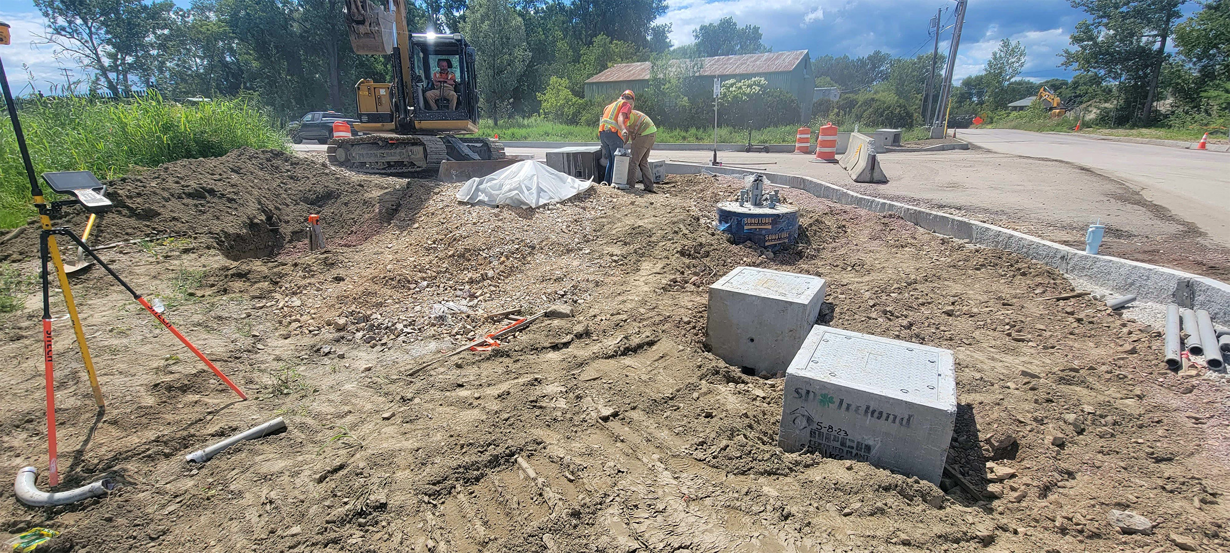 Sewer manhole installation along Lyman Avenue.