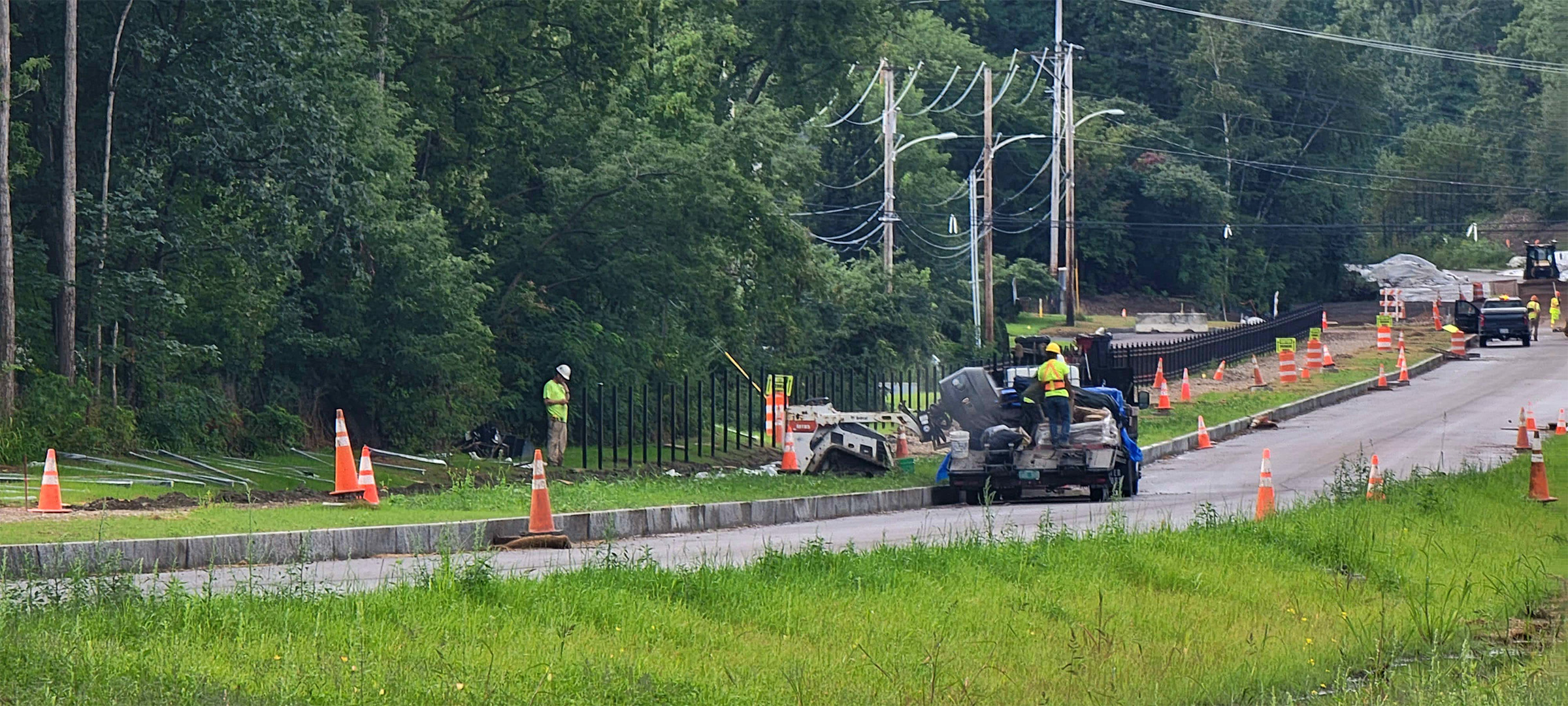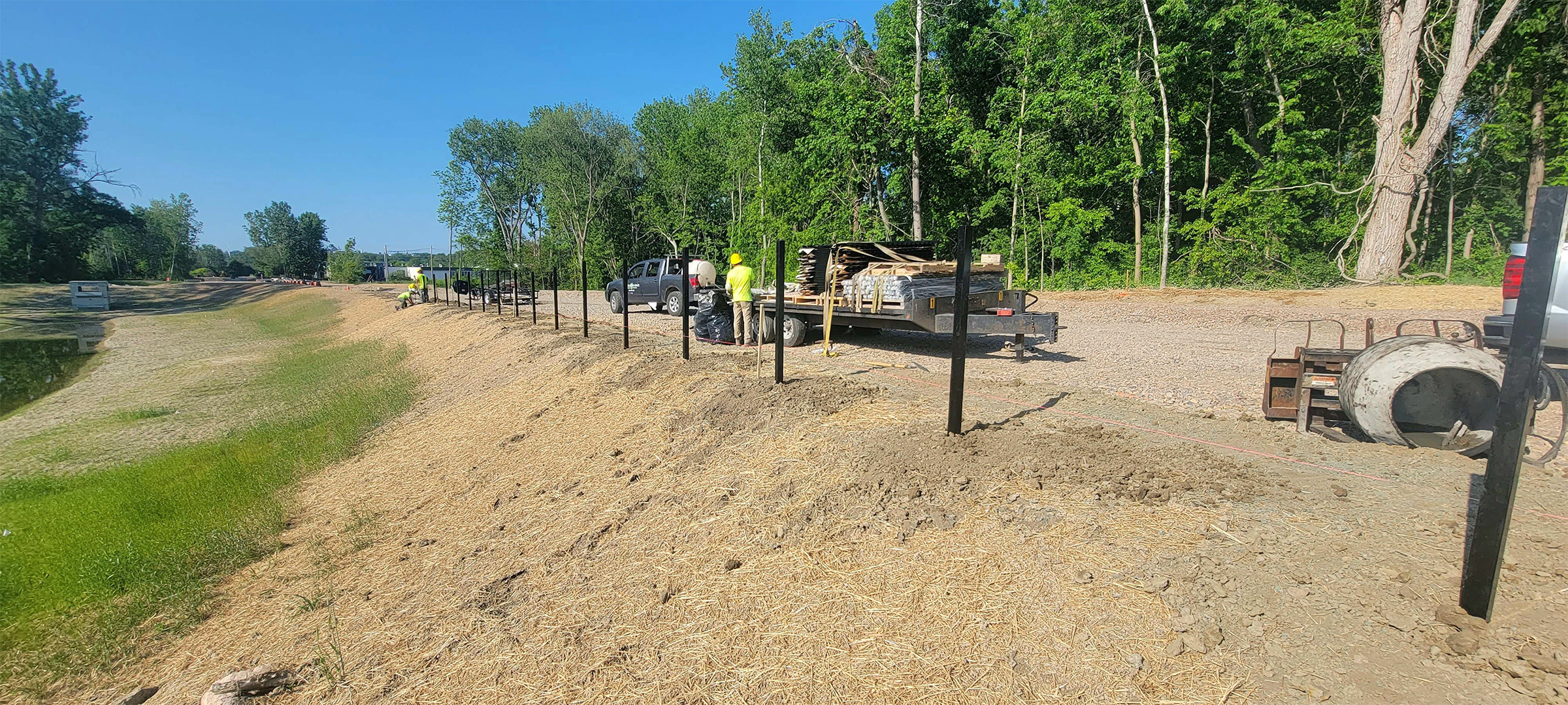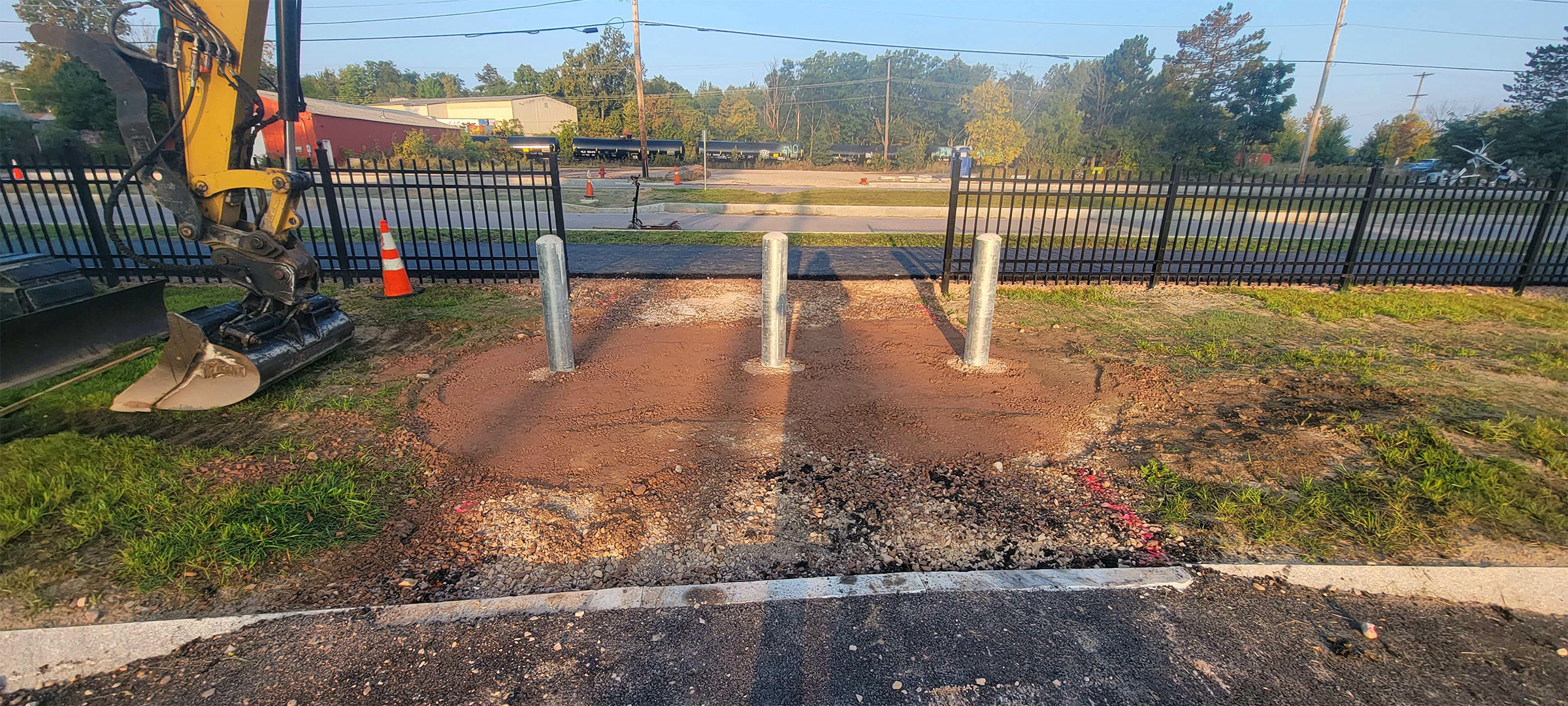 Installation of fence posts for the decorative fencing between the shared use path and Batchelder Street along the Parkway.