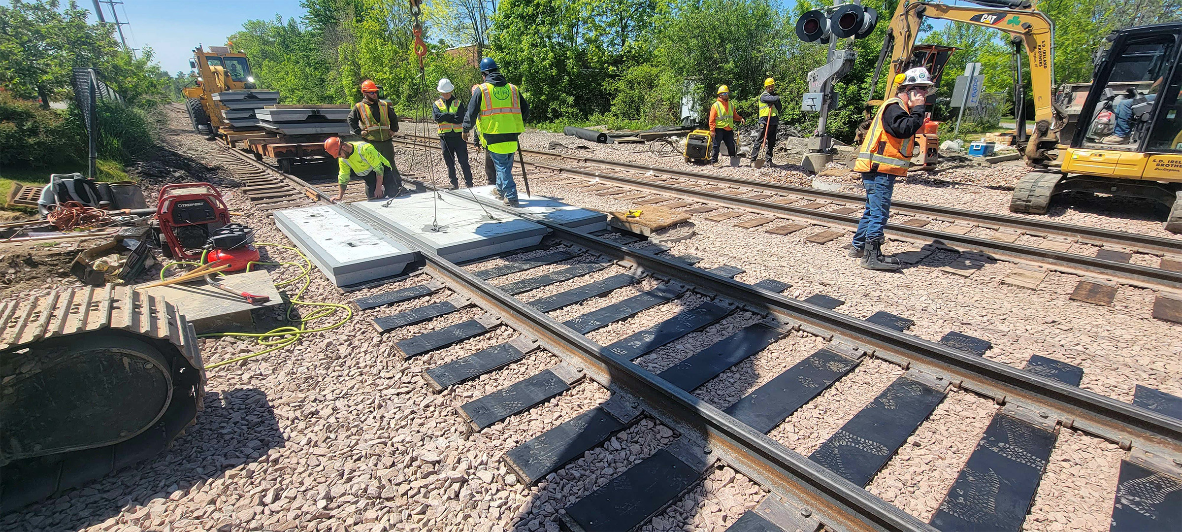 The installation of precast concrete panels for the railroad crossing at Flynn Avenue.