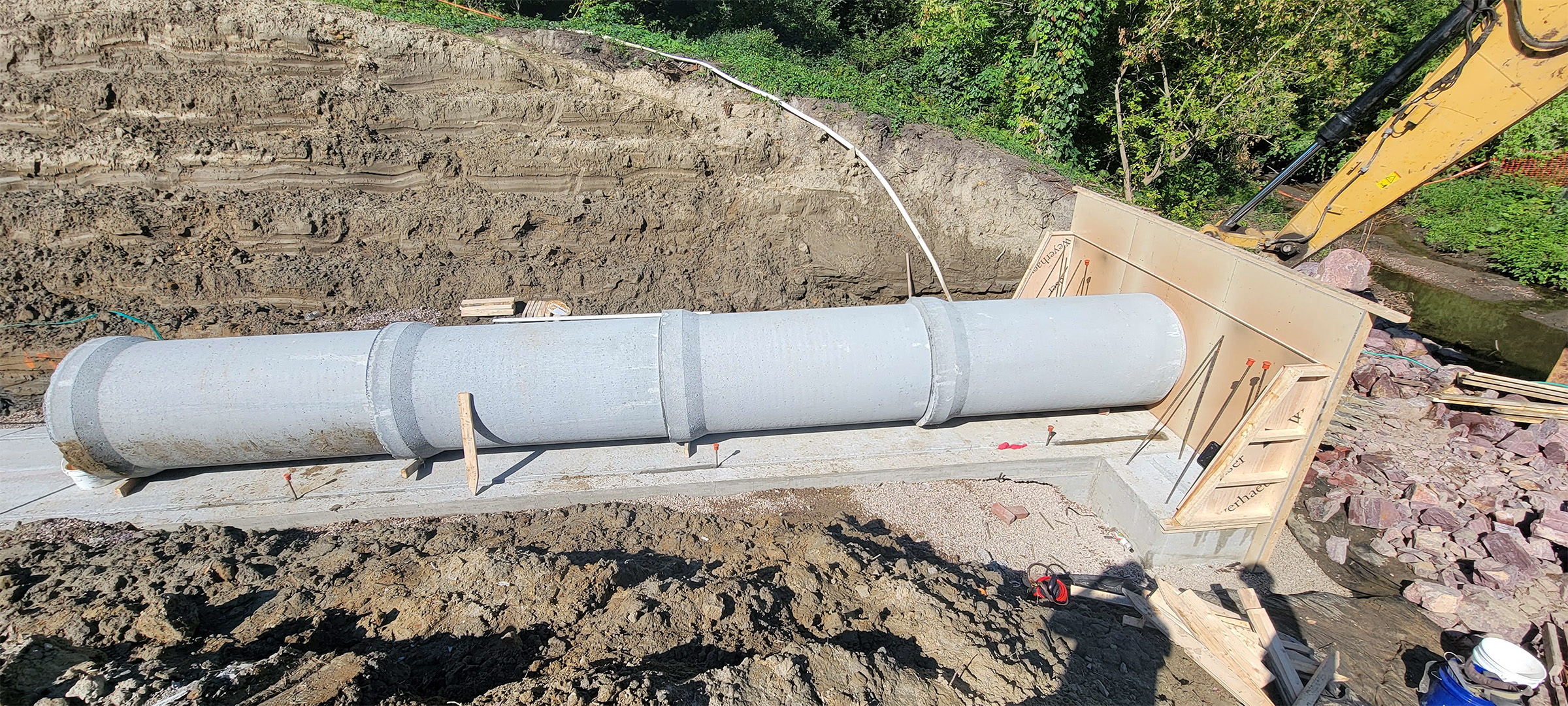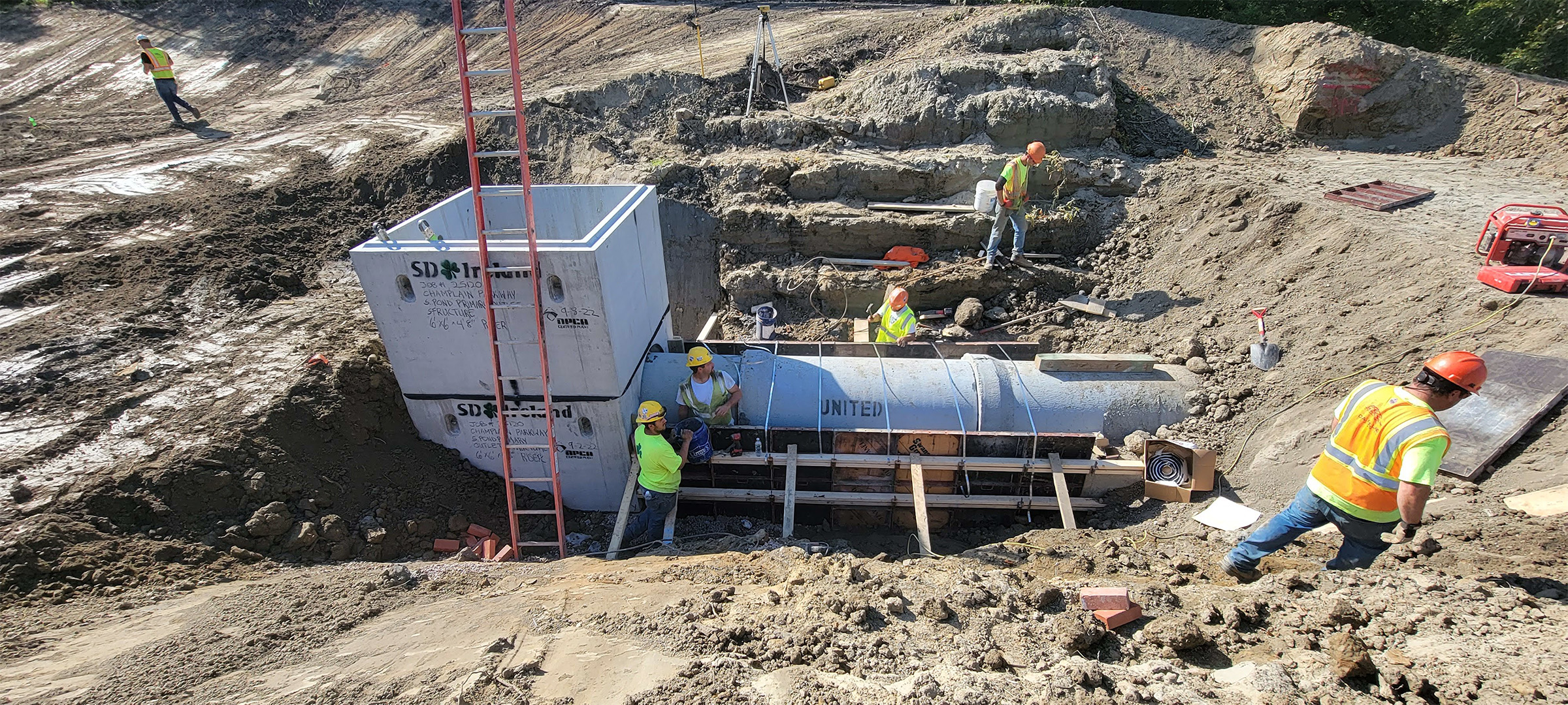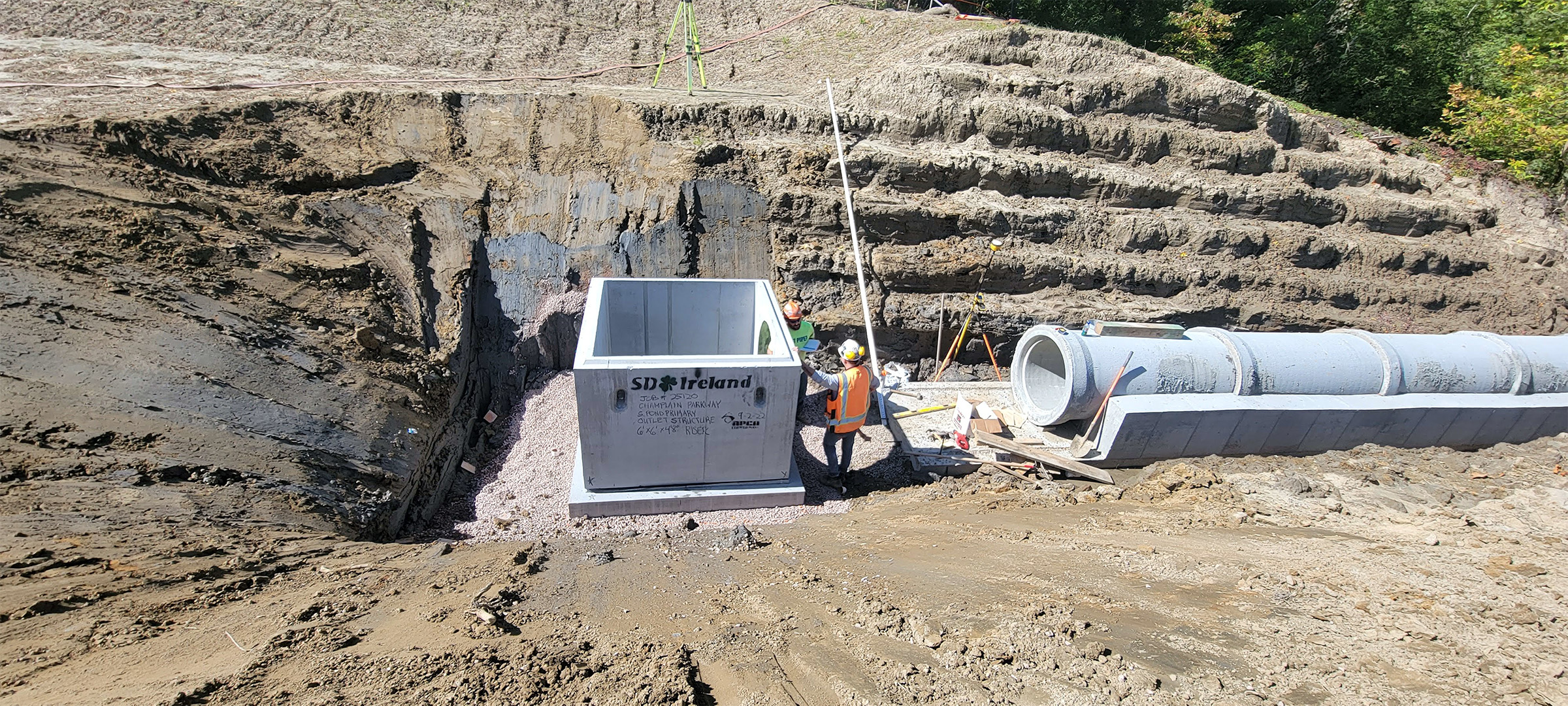 The Champlain Parkway included several stormwater features including the construction of a stormwater detention pond near Englesby Brook. Pictured pipe footing.