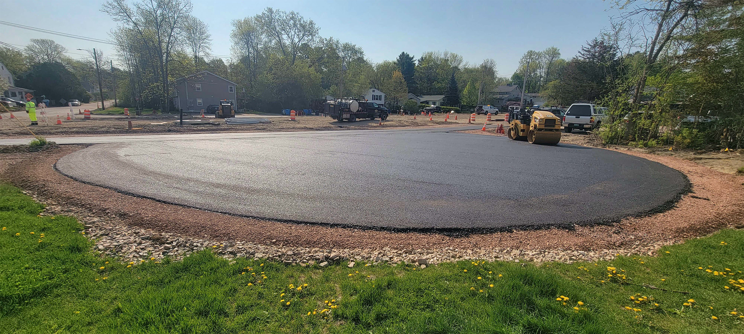 Base course paving at the intersection of Queen City Park Road and Austin Drive.