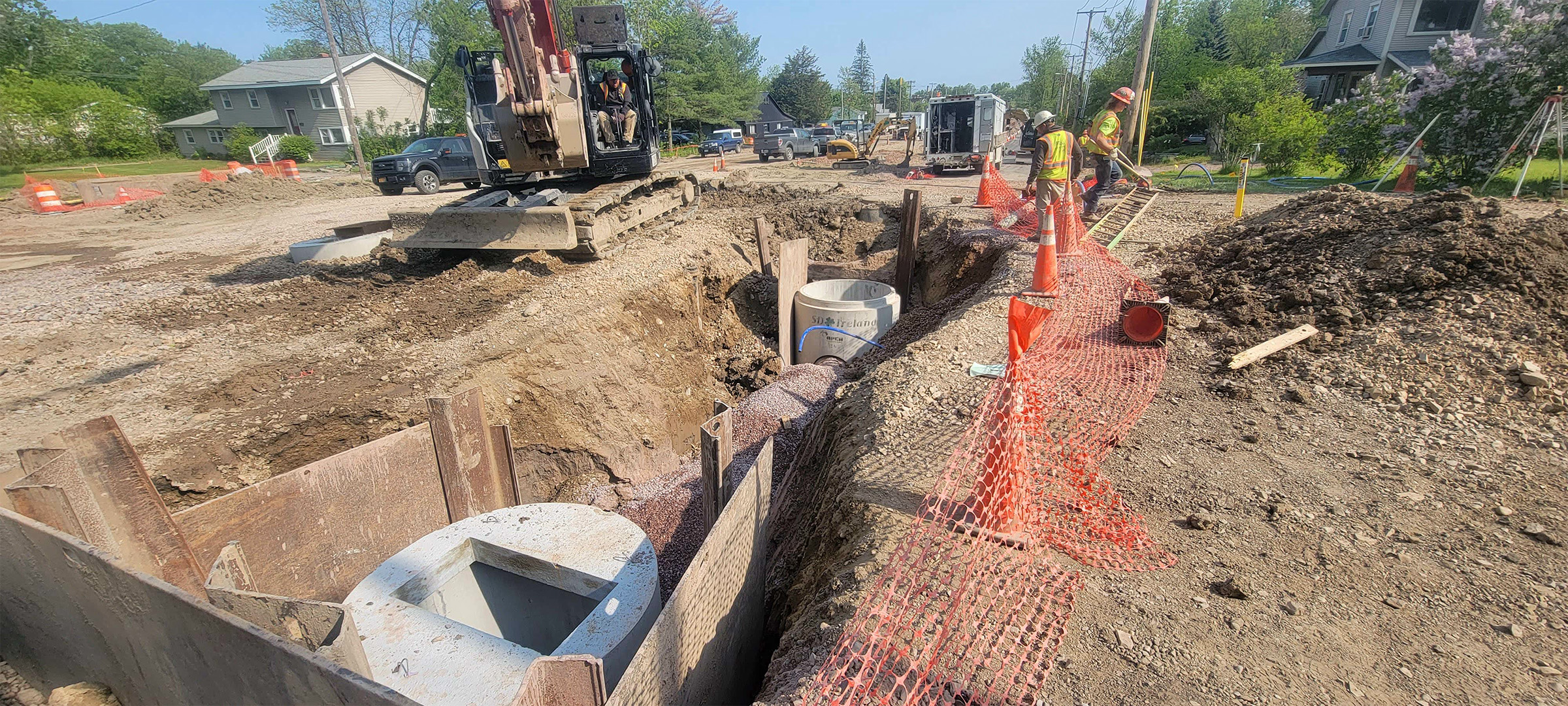 Crews install new sewer line throughout the south end to replace existing aging infrastructure. New sewer line installation on Flynn Avenue.