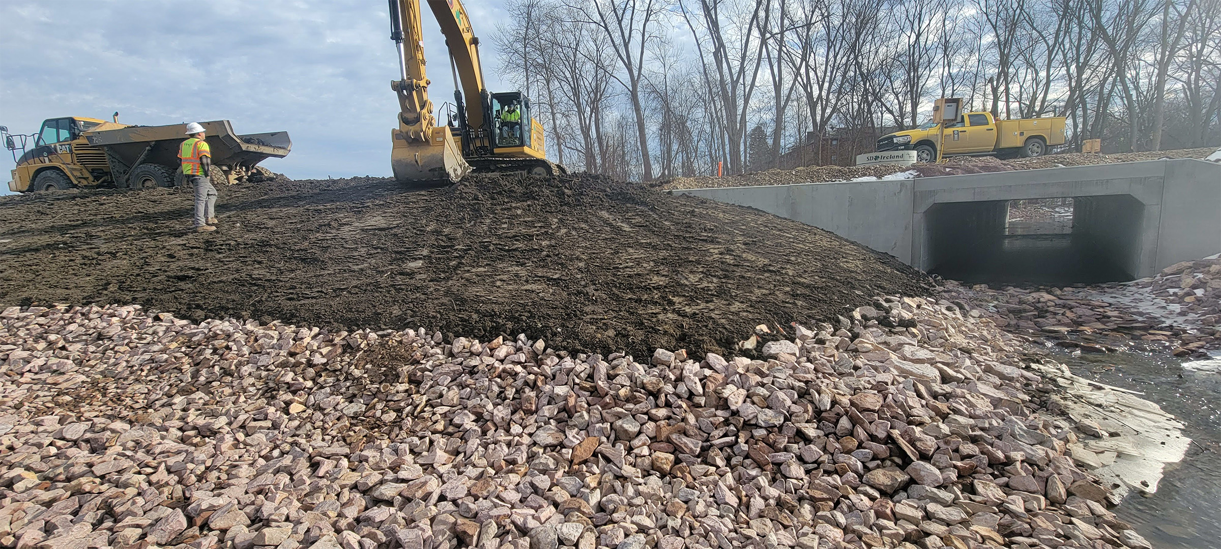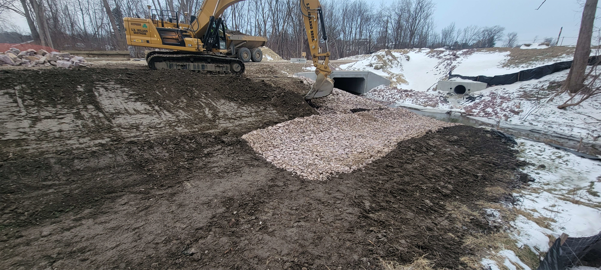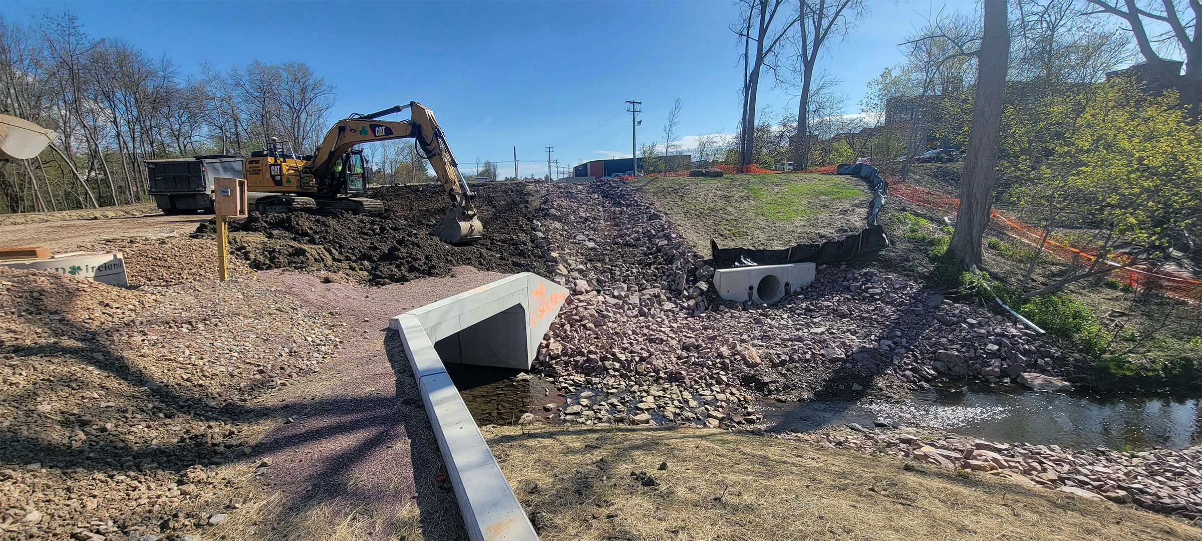 The Champlain Parkway Project includes several stormwater features including a box culvert for the Englesby Brook. Pictured backfilling around completed box culvert.