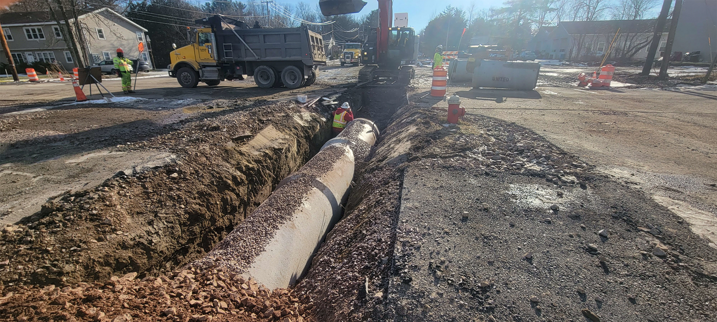 Crews install new water line throughout the south end to replace existing aging infrastructure. New water line on Batchelder Street.