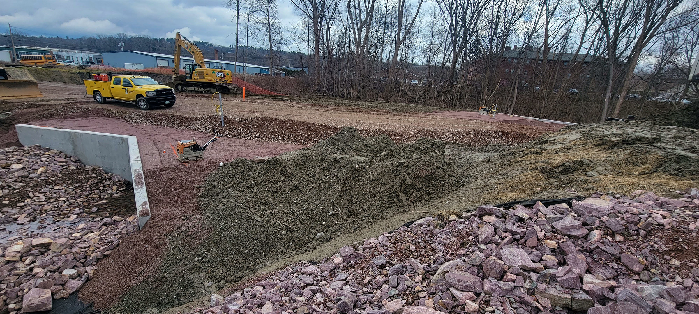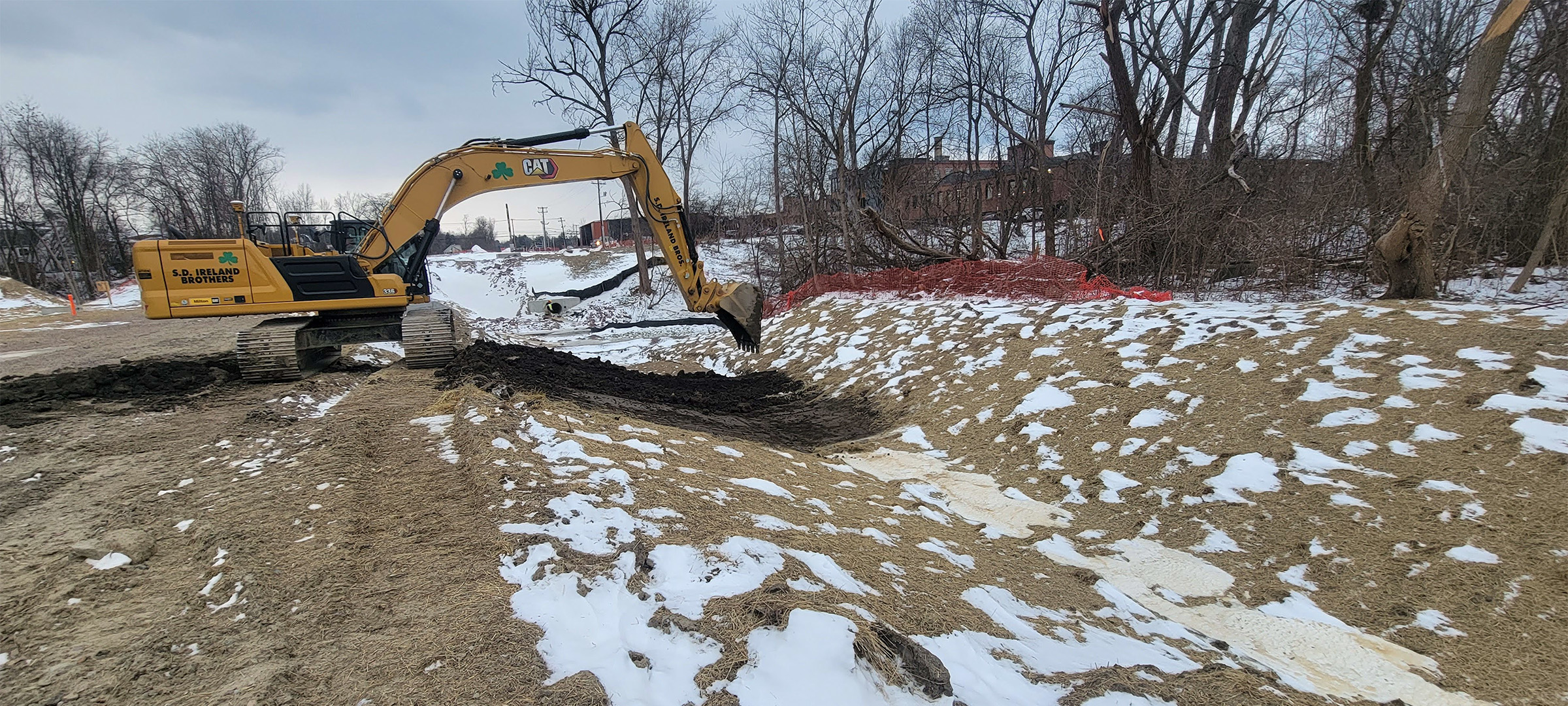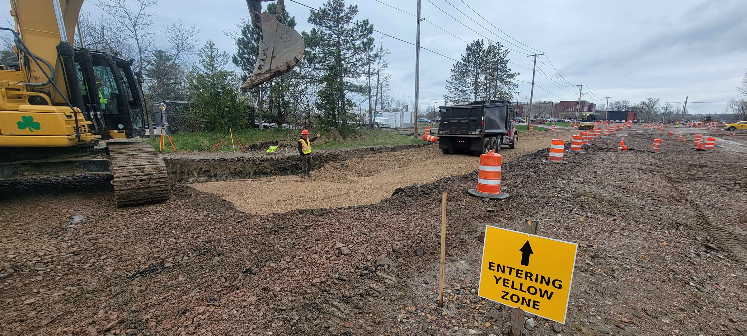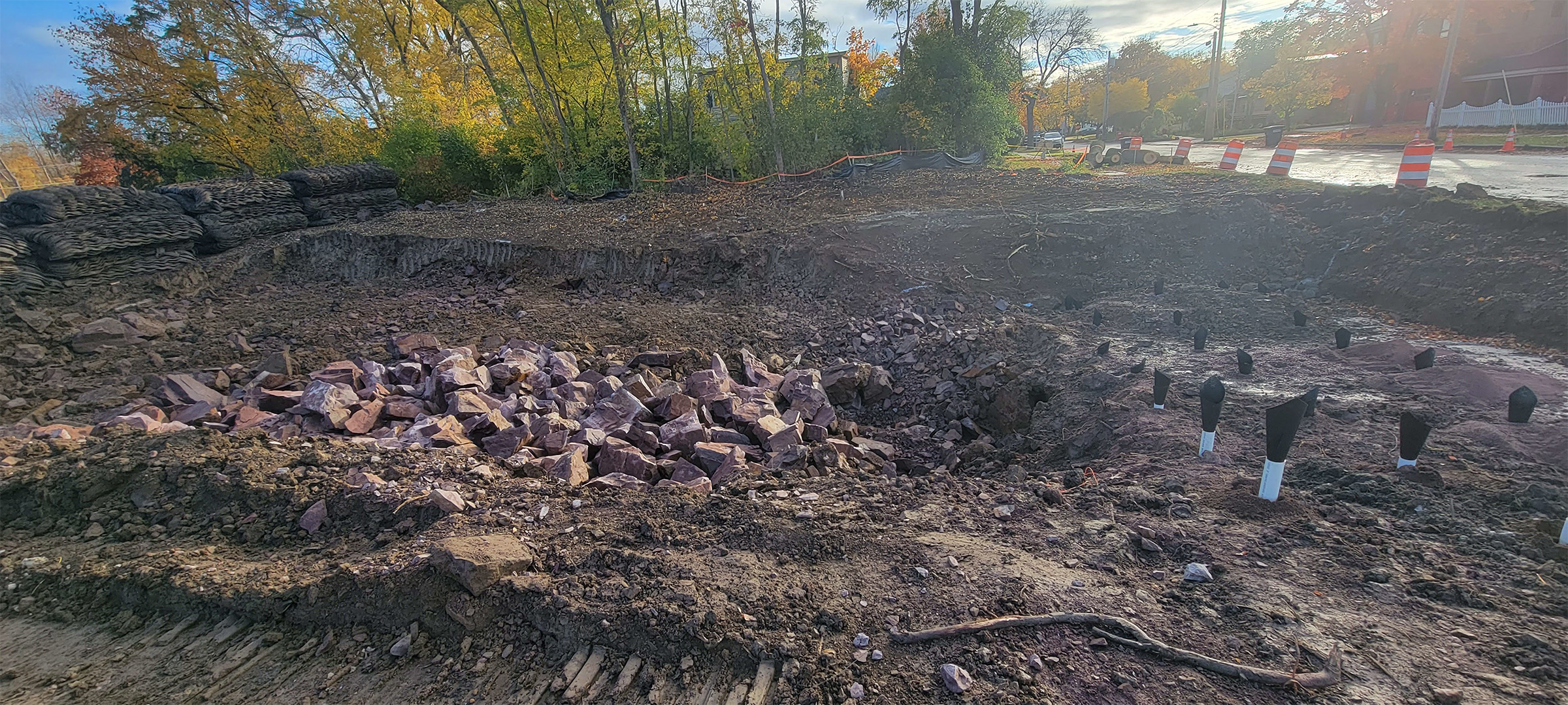 Excavation for the new alignment of the Maltex driveway on Pine Street.