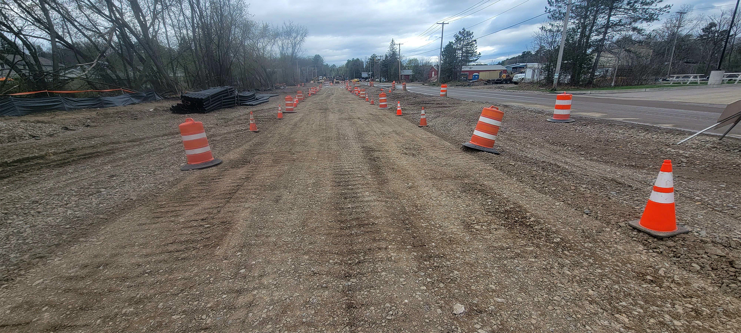 Installation of dense grade subbase material for the shared use path along the west side of Pine Street.