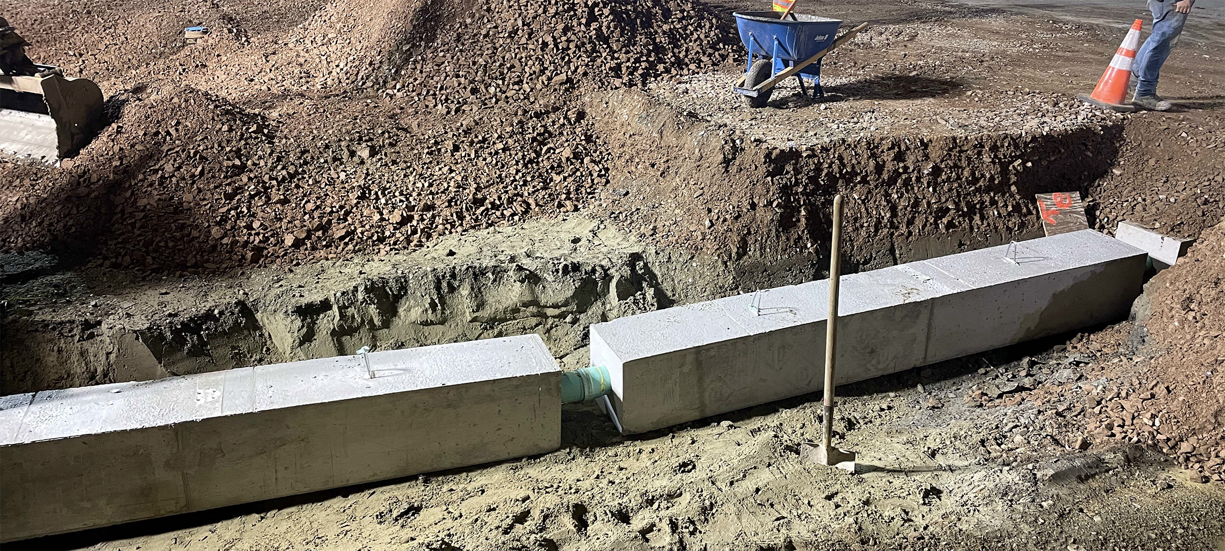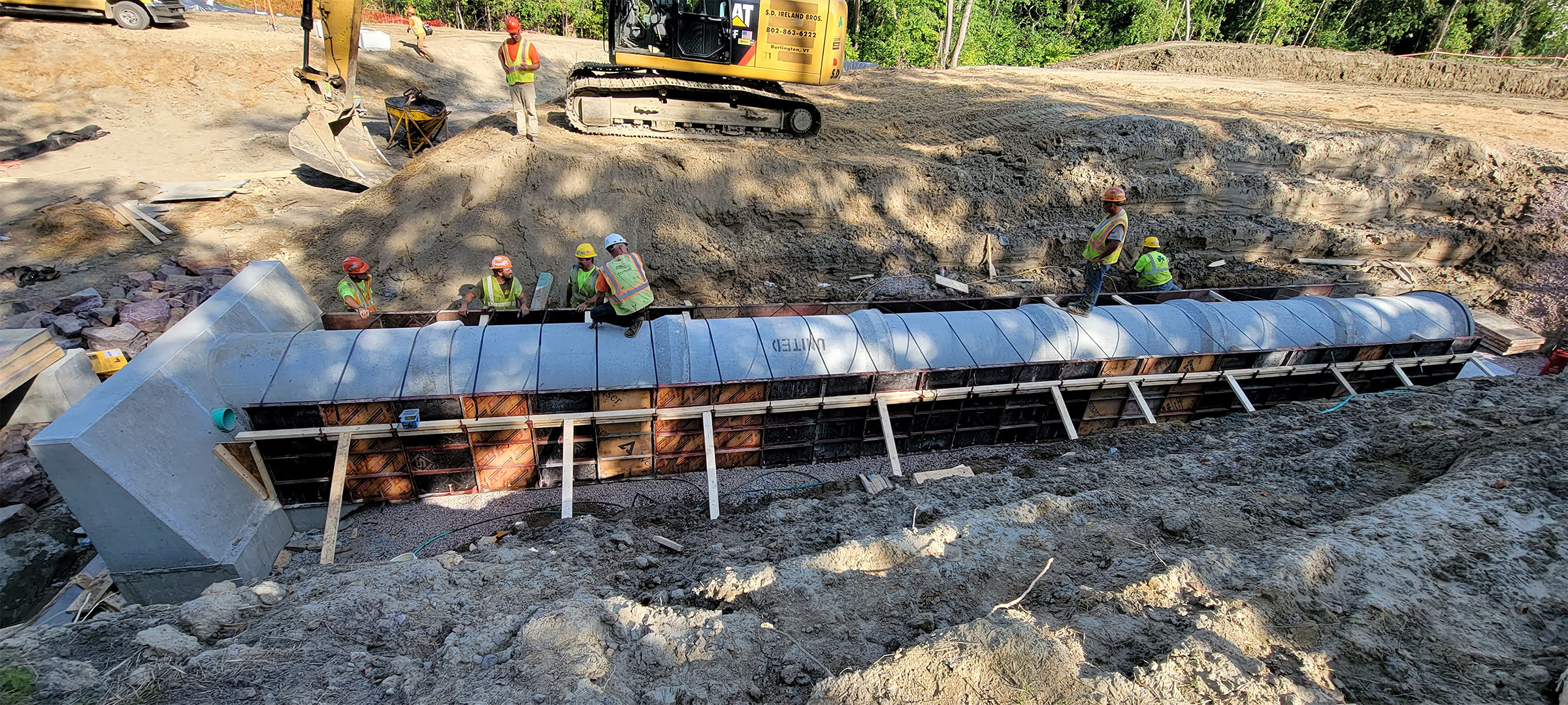 The Champlain Parkway Project includes several stormwater features including a box culvert for the Englesby Brook. Pictured downstream wingwall excavation.