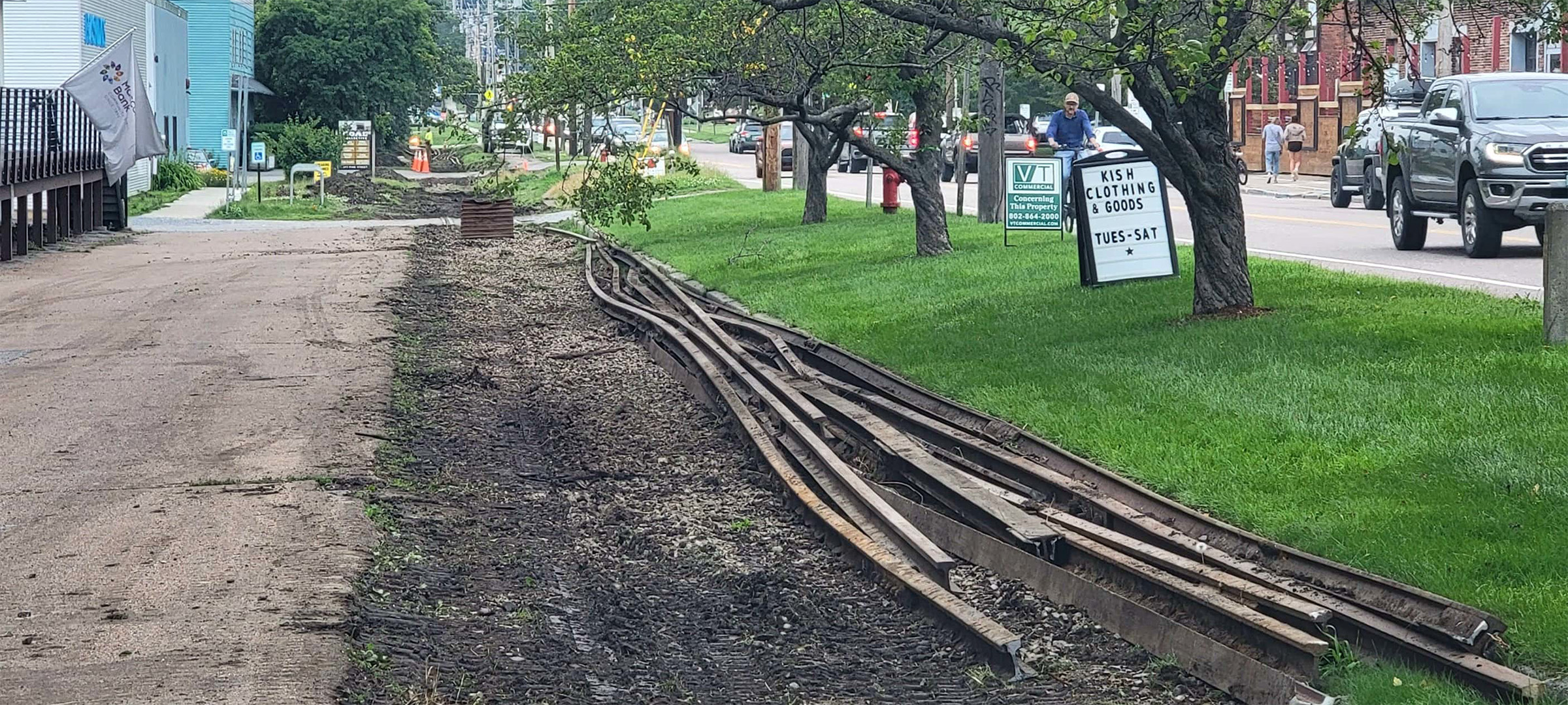 Removal of the existing abandoned railroad tracks along the west side of Pine Street in preparation for the installation of the new shared use path between Lakeside Avenue and Kilburn Street.