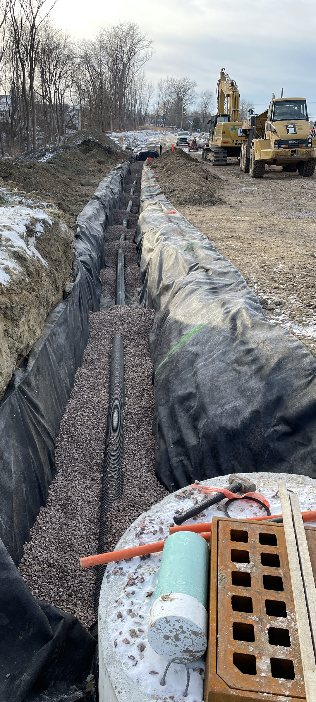 Installation of the six-inch underdrain along the Parkway between Morse Place and Home Avenue.