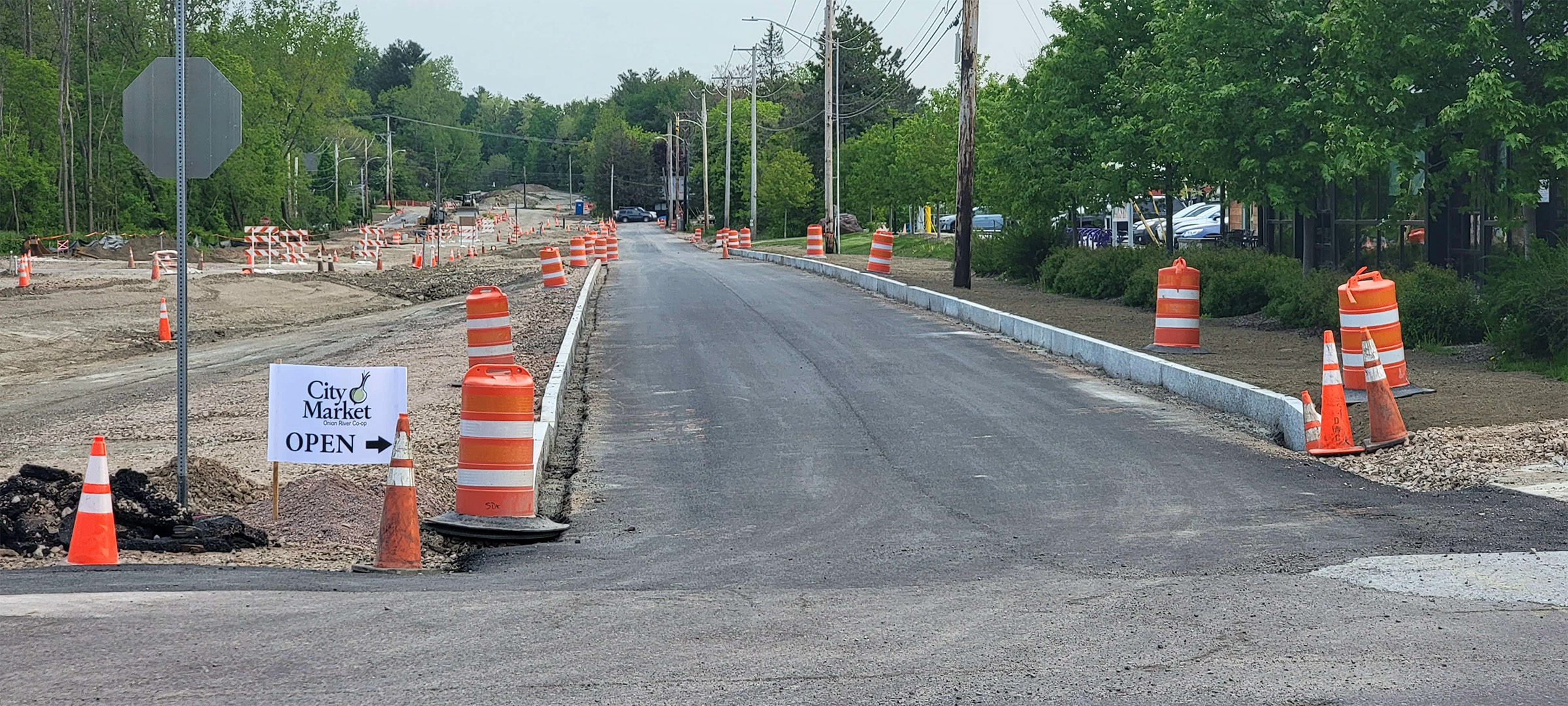 Granite curb and base course pavement along Briggs Street.