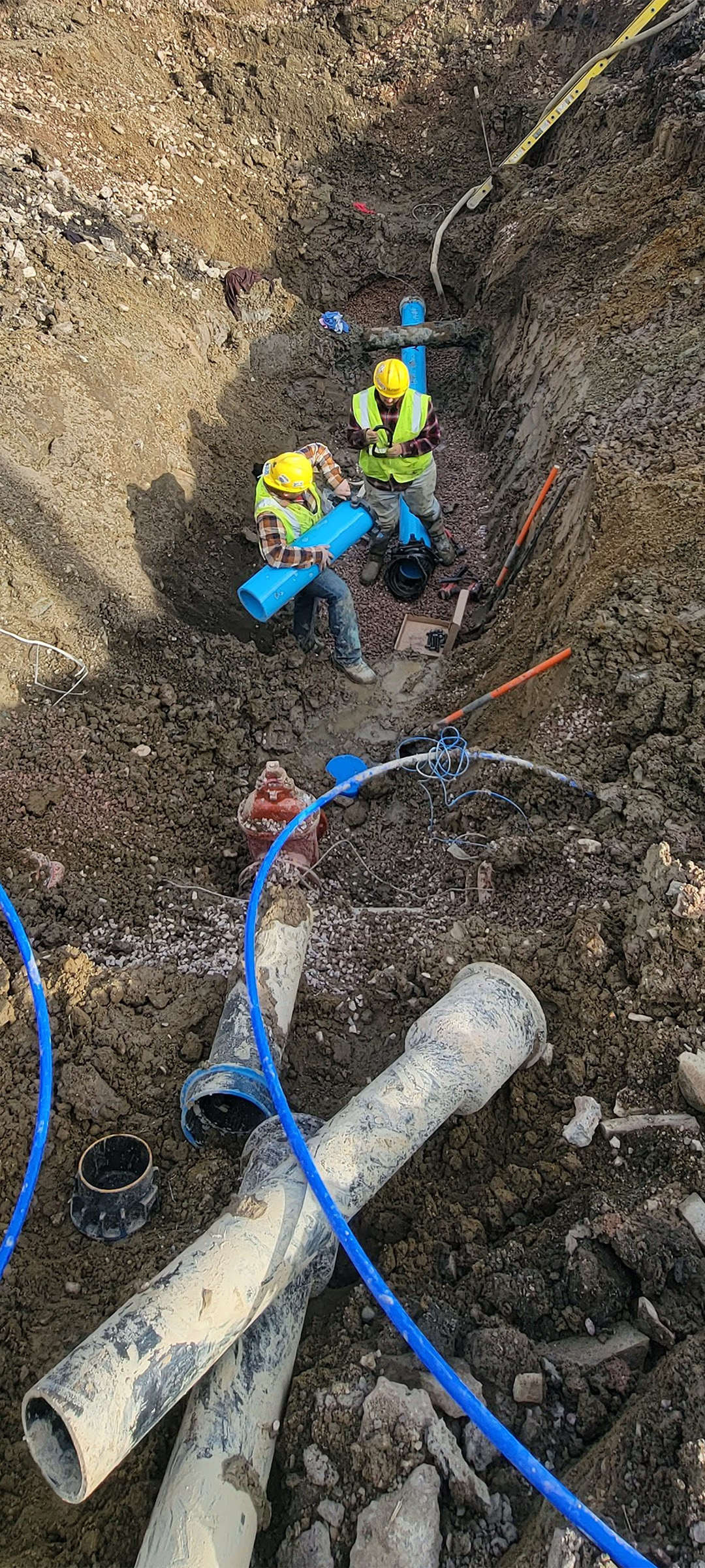 New waterline being tied into the existing waterline on the western end of Home Avenue.