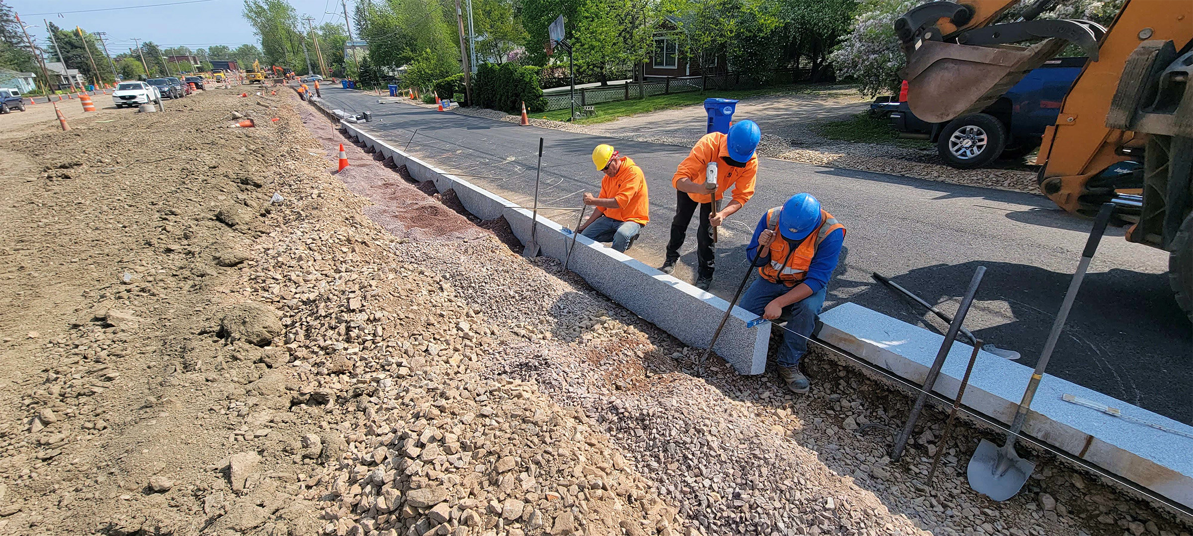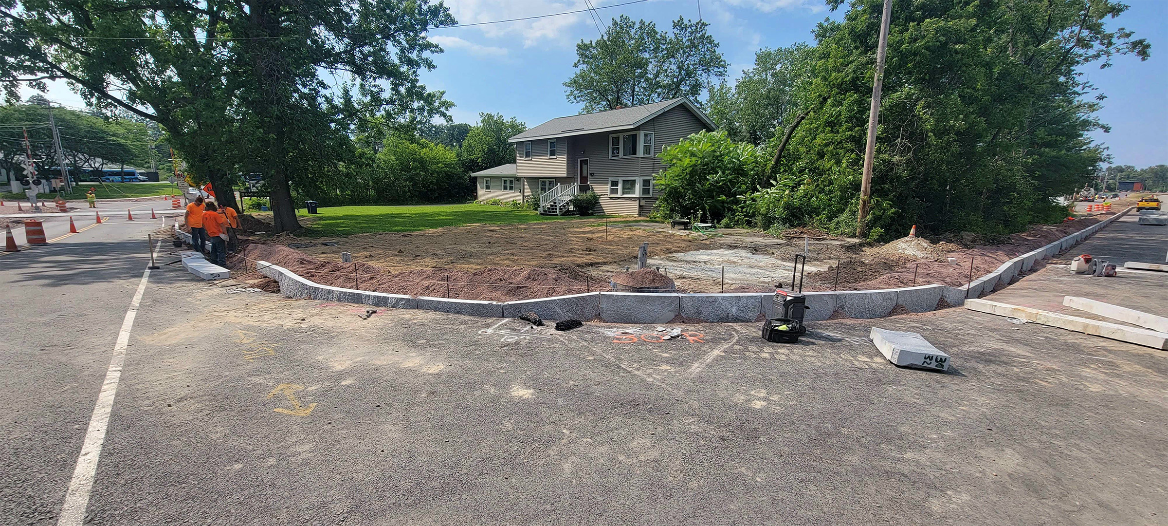 Installation of granite curb at the intersection of Home Avenue at the Parkway.