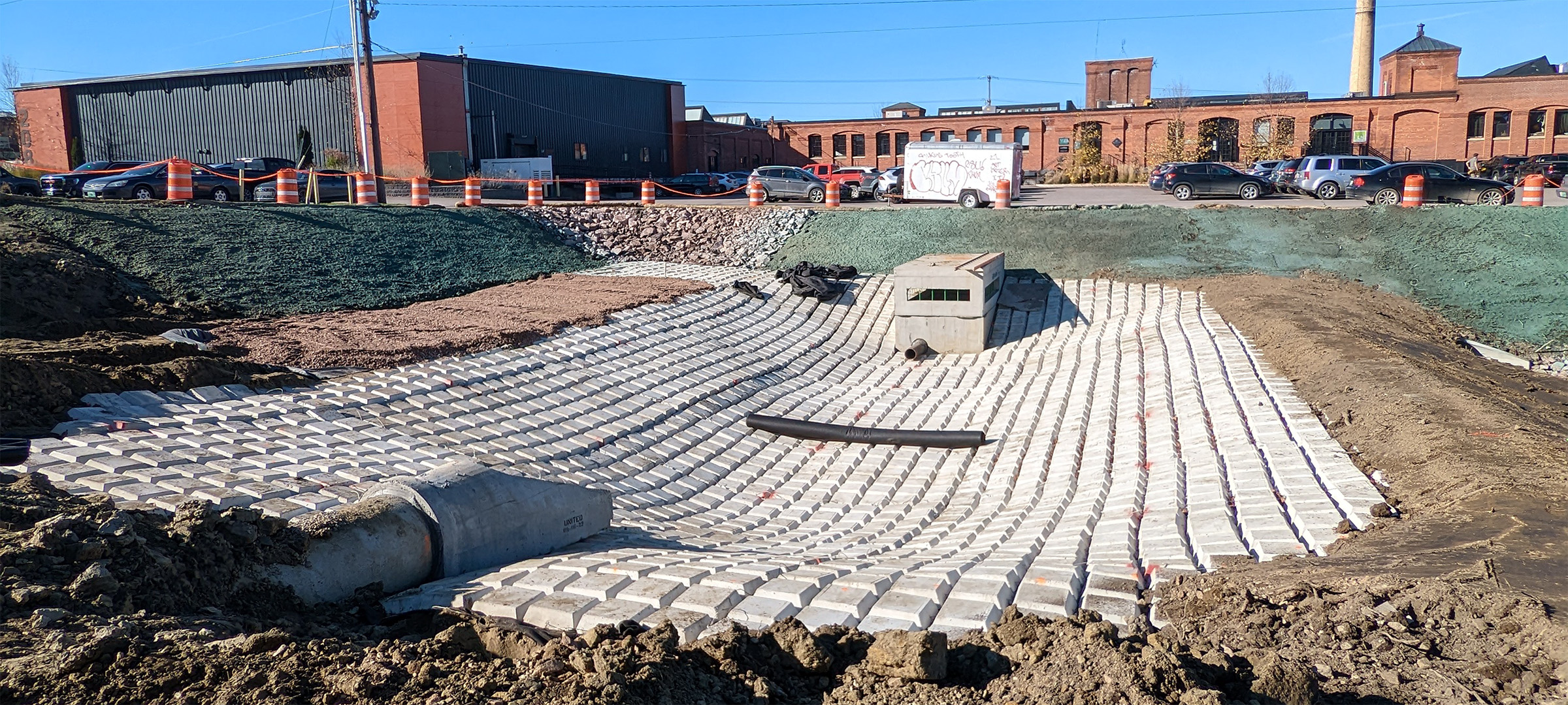 New stormwater infrastructure installed along the Champlain Parkway.
