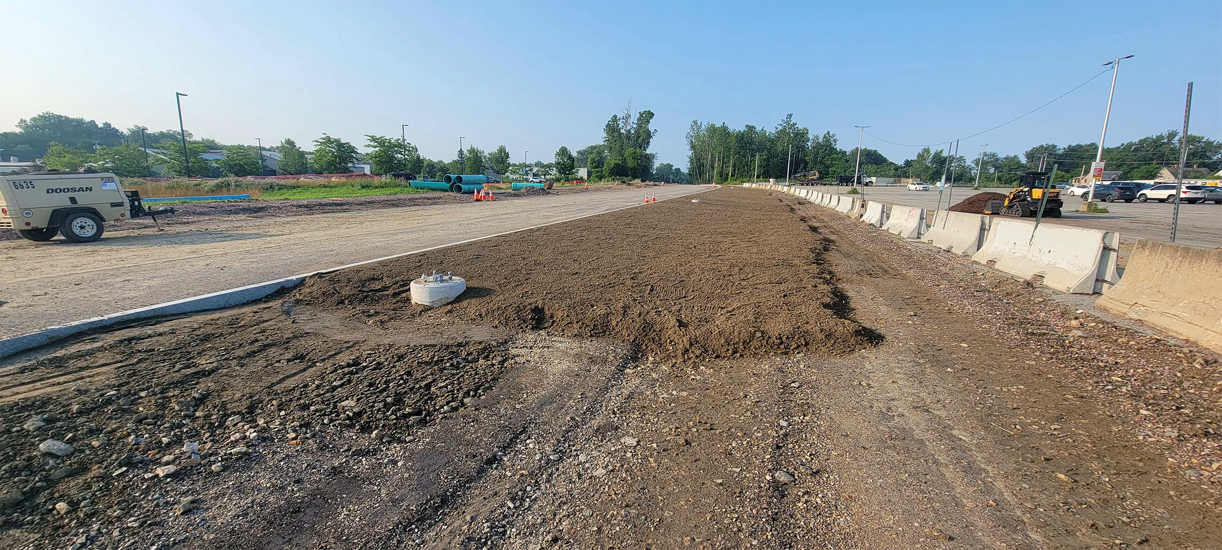 Installation of dense grade roadway subbase along the Parkway just south of the Home Avenue intersection.