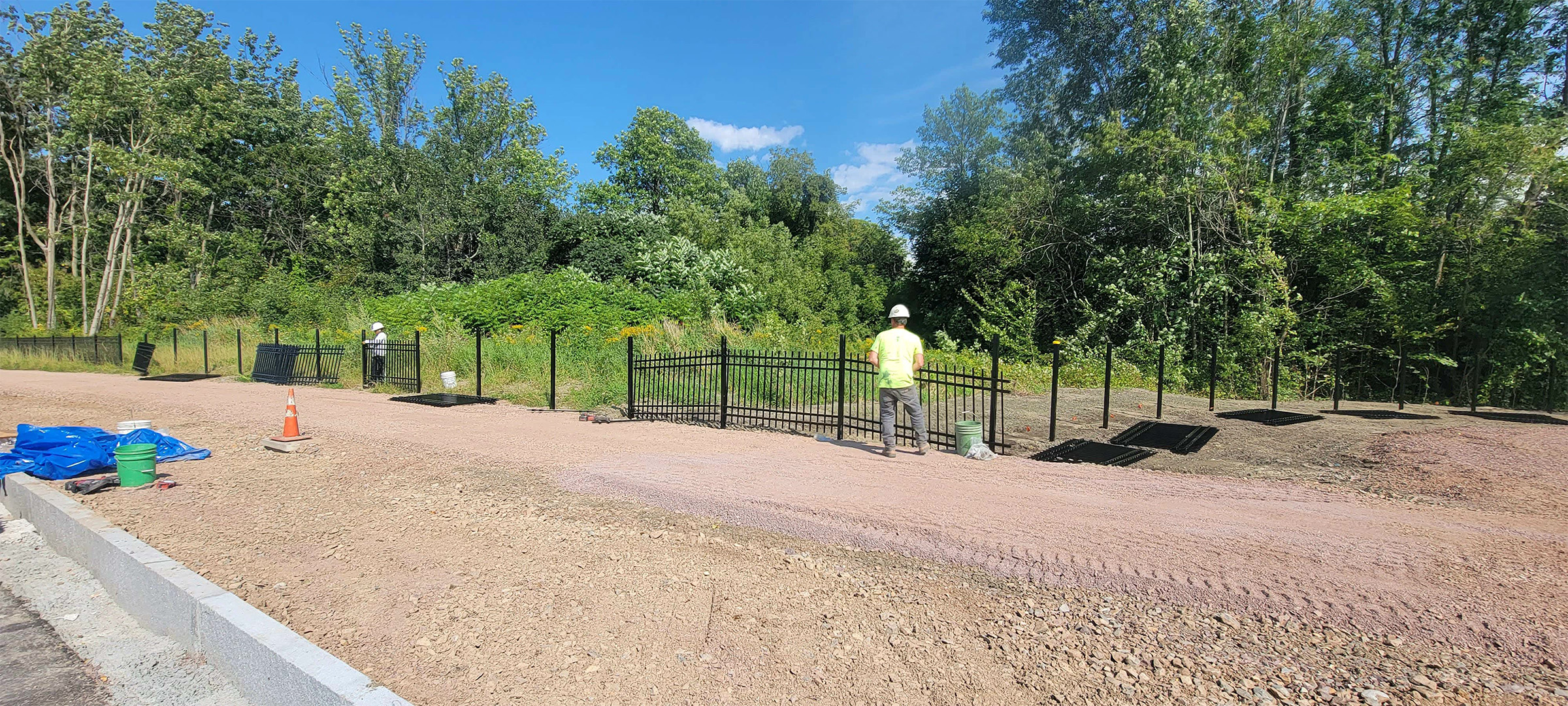 Installation of the decorative fencing around the Englesby detention pond.