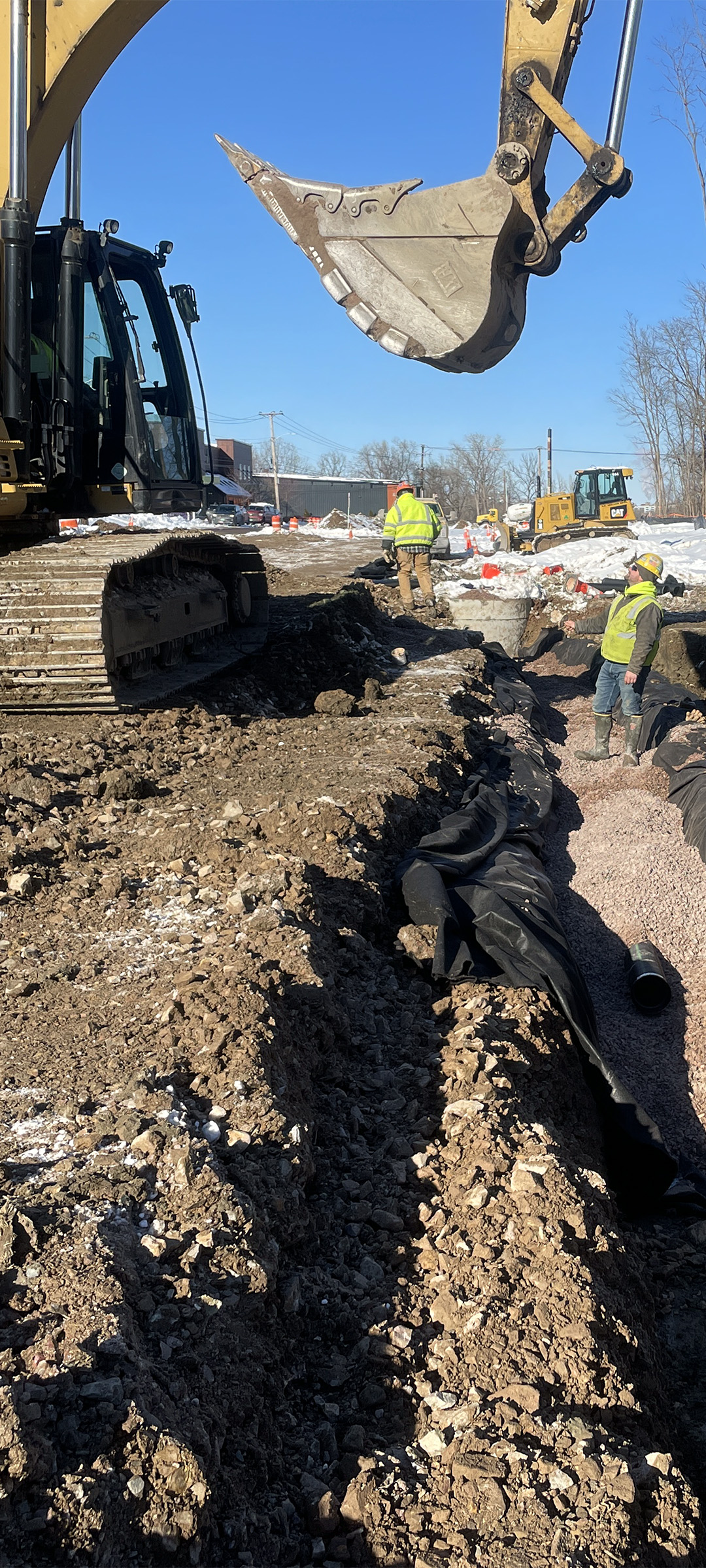 The installation of underdrain, a stormwater feature, beneath the new Champlain Parkway between Lakeside Avenue and Home Avenue.